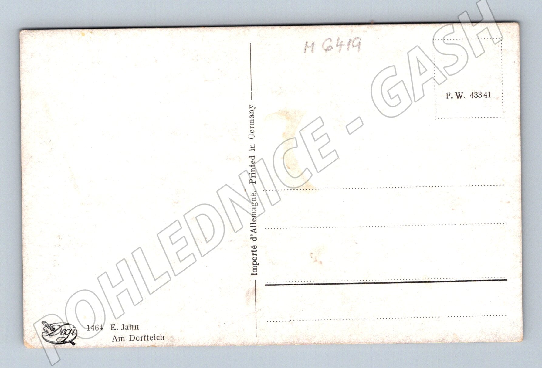 Pohlednice loďky na rybníku – E. Jahn, Am Dorfteich, malovaná, čistá