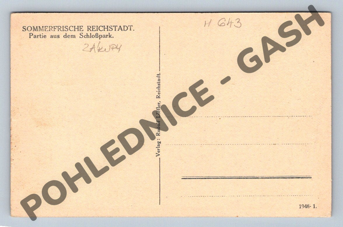 Pohlednice Zákupy zámecký park Reichstadt 1948 ČSR (M643)