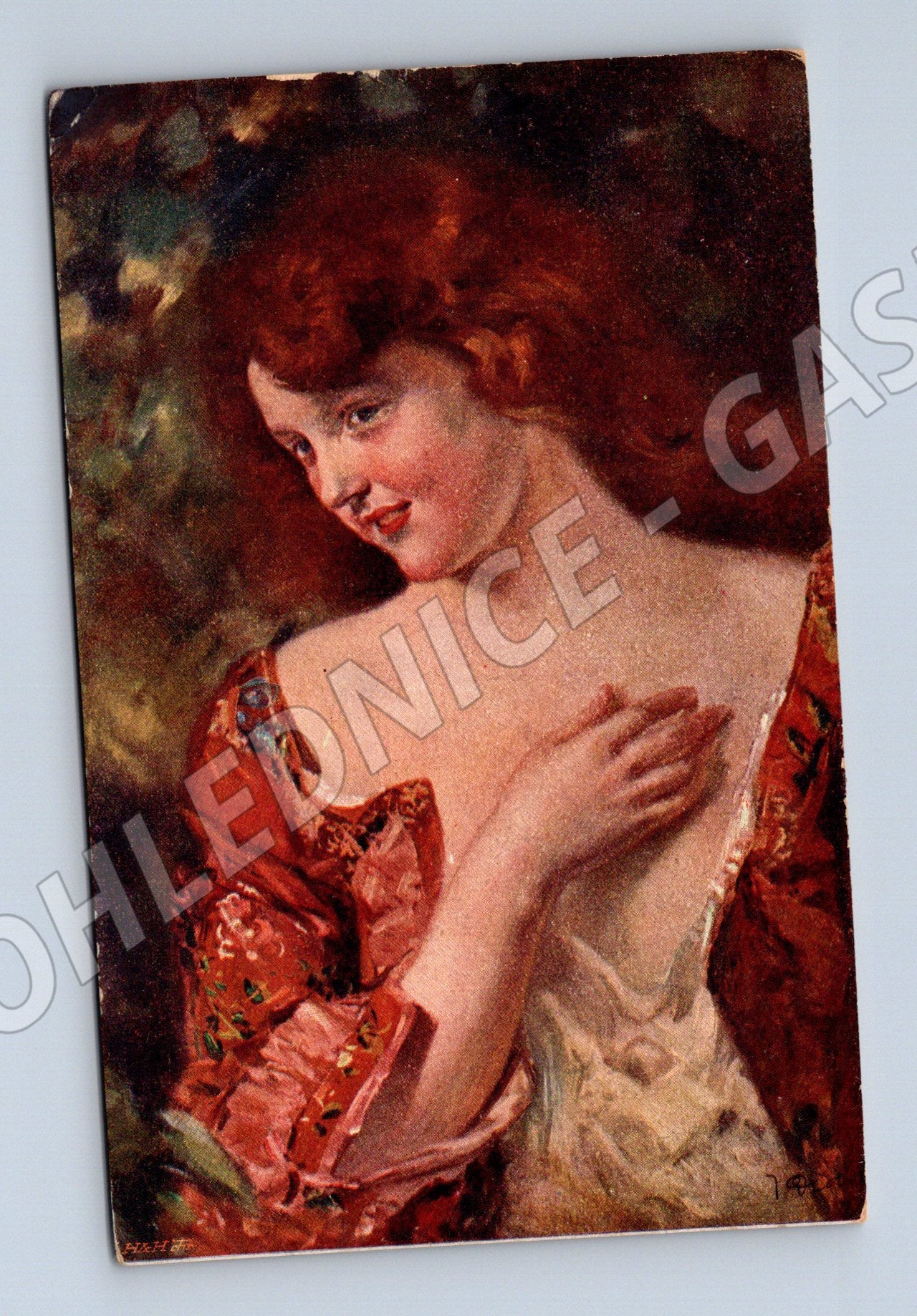 Originální stará pohlednice s reprodukcí obrazu od českého malíře J. Dědina – Zlatovláska. Pohlednice zobrazuje portrét ženy s rudými vlasy a jemným výrazem, tzv. La femme aux cheveux d or (Žena se zlatými vlasy). Na zadní straně je ručně psaný text a dvě červené poštovní známky z období Československa. Vydáno Galerií českých umělců, značené také textem v několika jazycích. Atraktivní sběratelský kus vhodný do sbírky umělecky zaměřených pohlednic. Stav odpovídá stáří – rohy mírně opotřebované, známky používání.