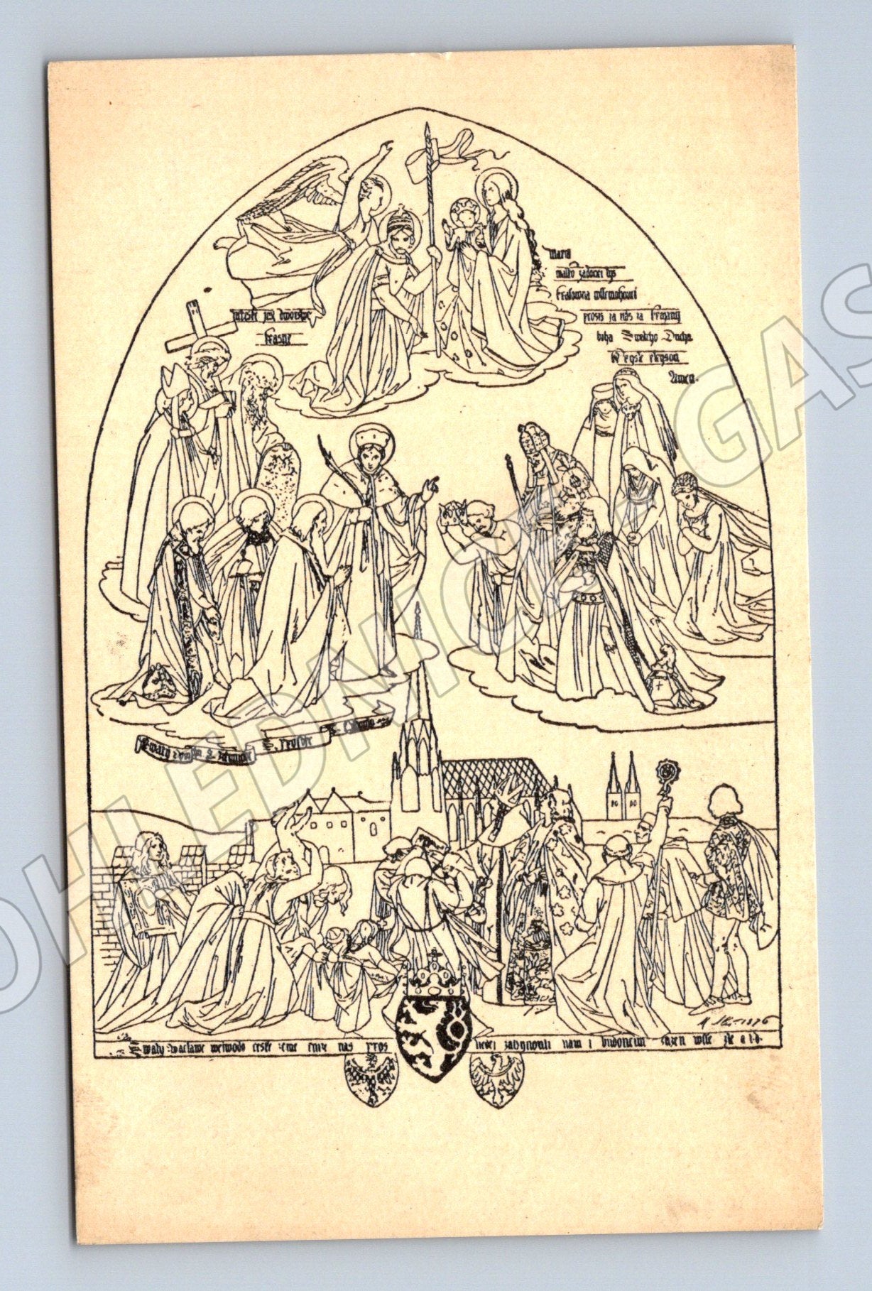 Pohlednice s reprodukcí díla Mikuláše Alše - Chórál svatováclavský, vydaná ke tisícímu výročí smrti sv. Václava. Na přední straně je vyobrazen kreslený výjev od významného českého malíře Mikuláše Alše s postavami sv. Václava a dalších svatých. Zadní strana obsahuje popis včetně informace o tom, že prvním majitelem byl v roce 1876 Alois Jirásek, a že originál je nyní vystaven v Moderní galerii v Praze. Pohlednice vydal Svatováclavský výbor v Praze. Velmi zajímavý sběratelský kus z oblasti českého výtvarného umění a historie. Stav odpovídá stáří, viz foto.