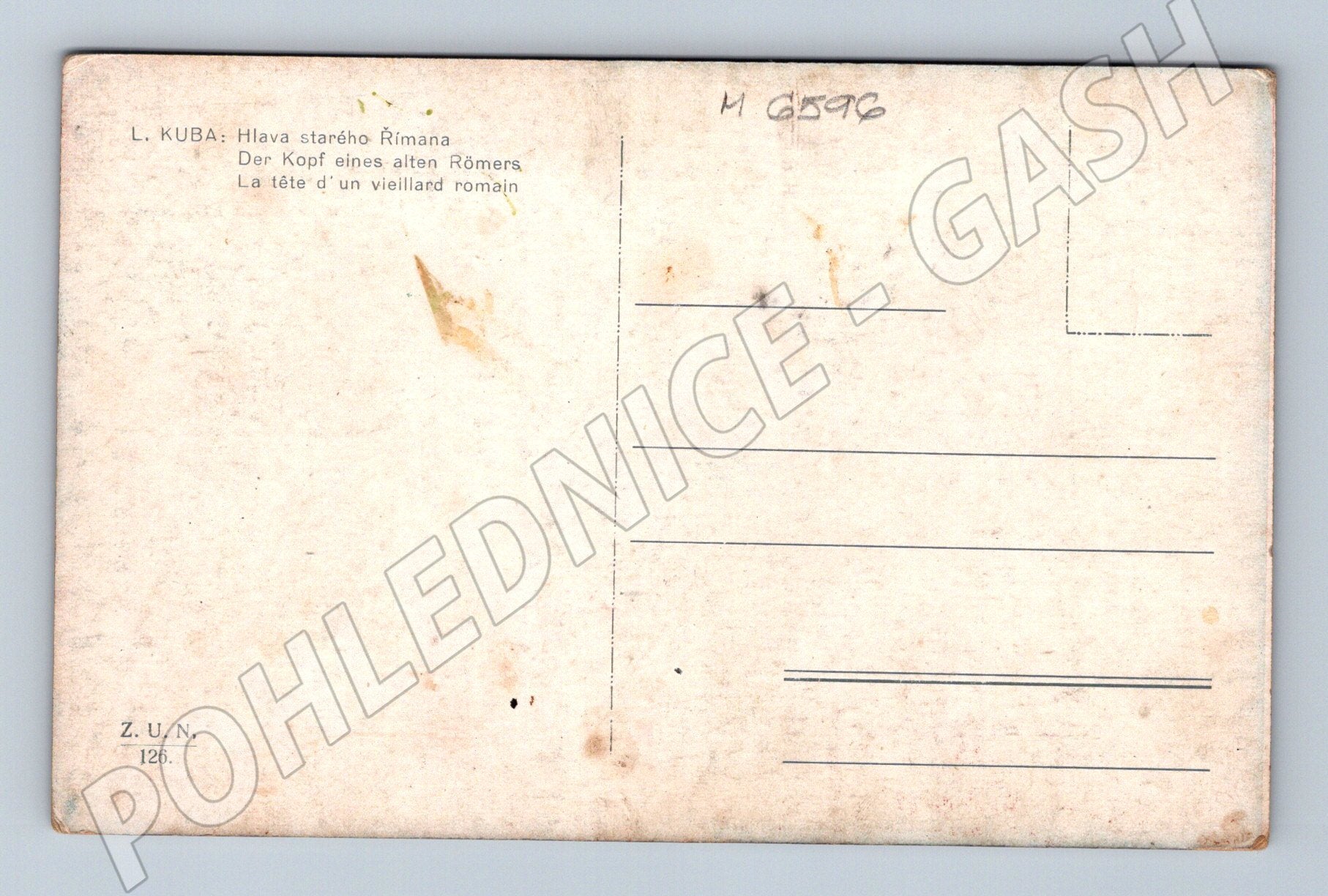 Pohlednice L. Kuba – Hlava starého Římana, malířství