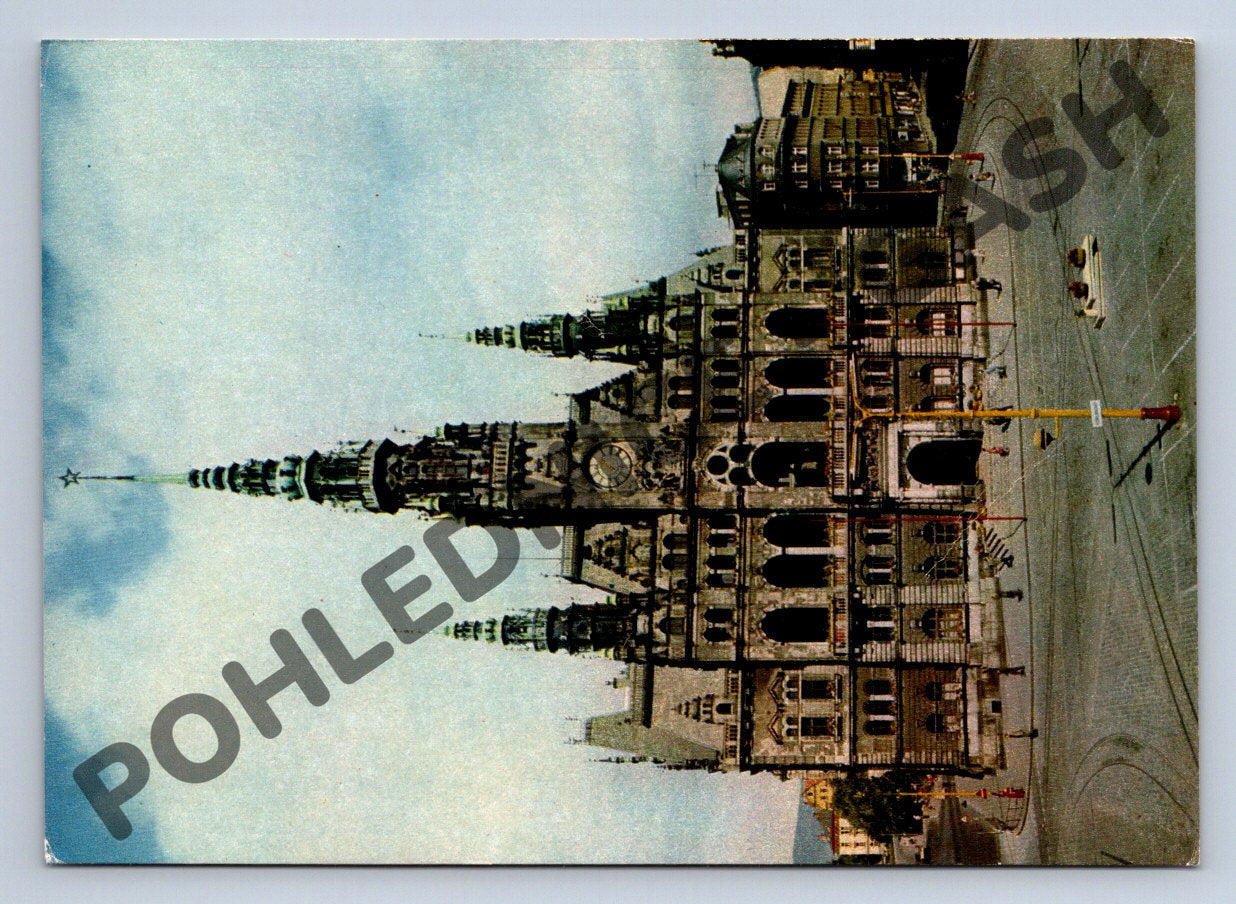 Pohlednice zobrazuje Náměstí bojovníků za mír v Liberci s mohutnou budovou radnice, která byla postavena v letech 1888-1893. Radnice je významnou ukázkou severočeské průmyslové architektury a novorenesanční styl připomíná vídeňskou radnici díky vysoké věži s hodinami. Pohlednice je zachycena v barevné podobě s jasným a detailním zobrazením budovy i okolního náměstí. Na zadní straně je textový popis objektu, údaje o vydavateli a místo pro adresu. Foto V. Fyman. Pohlednice je vhodná pro sběratele historických fotografií, milovníky architektury a regionální historie Liberce.