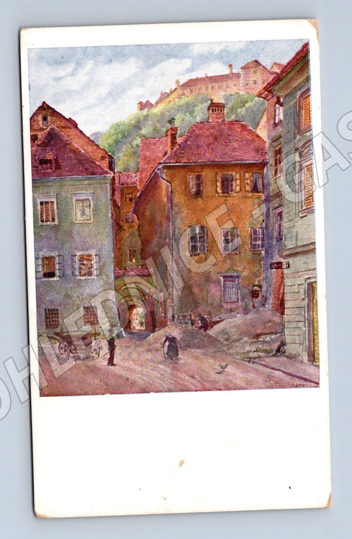 Originální historická pohlednice zobrazující malířsky zpracovaný pohled na starou část města Lublaň – konkrétně ulici Rybja ulica (Rybia ulice). Pohlednice pochází ze Slovinska a je dílem Sashy Šantela. Na přední straně je malířský motiv historických městských domů, zadní strana má značení a popis ve slovinštině, cyrilici a latině. Pohlednice je bez poštovního razítka, ve výborném sběratelském stavu odpovídajícím svému stáří. Tato pohlednice je ideální sběratelský kousek pro milovníky historie měst a architektury středoevropského prostoru.