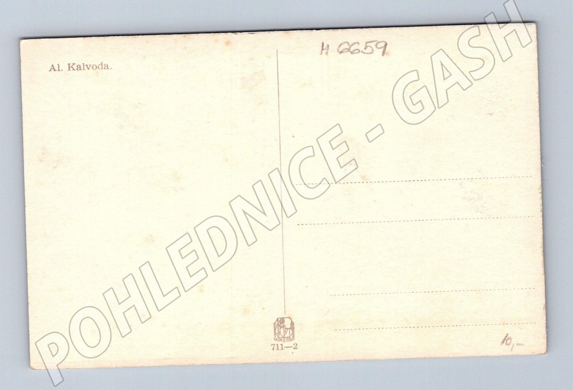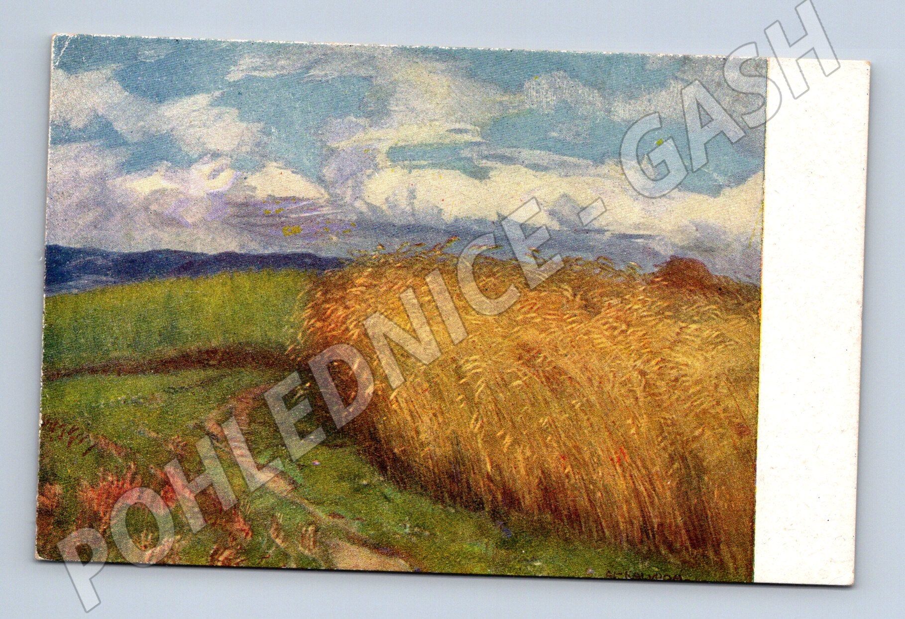 Nabízím originální starou pohlednici s motivem malby od významného českého malíře Alfonse Kalvody. Pohlednice zachycuje krásnou letní krajinu s obilným polem a modrou oblohou s oblaky. Na zadní straně je uvedeno jméno autora ‚Al. Kalvoda‘ a znak vydavatele 711-2. Tato pohlednice je bez popisu a nebyla použita. Výborný sběratelský stav, drobné stopy stáří dle fotografií. Skvělý doplněk do sbírky historických pohlednic s uměleckou tematikou.