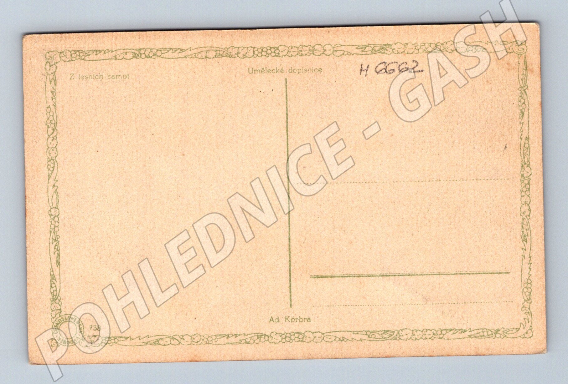 Originální stará pohlednice s malovaným motivem krajiny z Čech, na které je vyobrazen kříž a cestička vedoucí lesem s krásnými výhledy do okolní krajiny. Zadní strana nenese žádné známky použití. Pohlednice má umělecké zpracování, okraje jsou mírně zažloutlé odpovídající stáří. Ideální k rozšíření sbírky historických pohlednic nebo jako dárek pro milovníky umění a českých krajin.