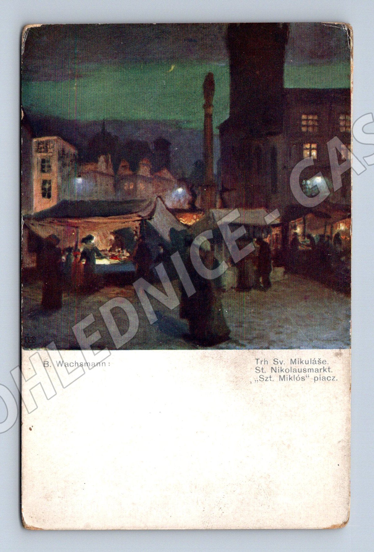Pohlednice Trh Sv. Mikuláše – B. Wachsmann, malý formát, do 1950
