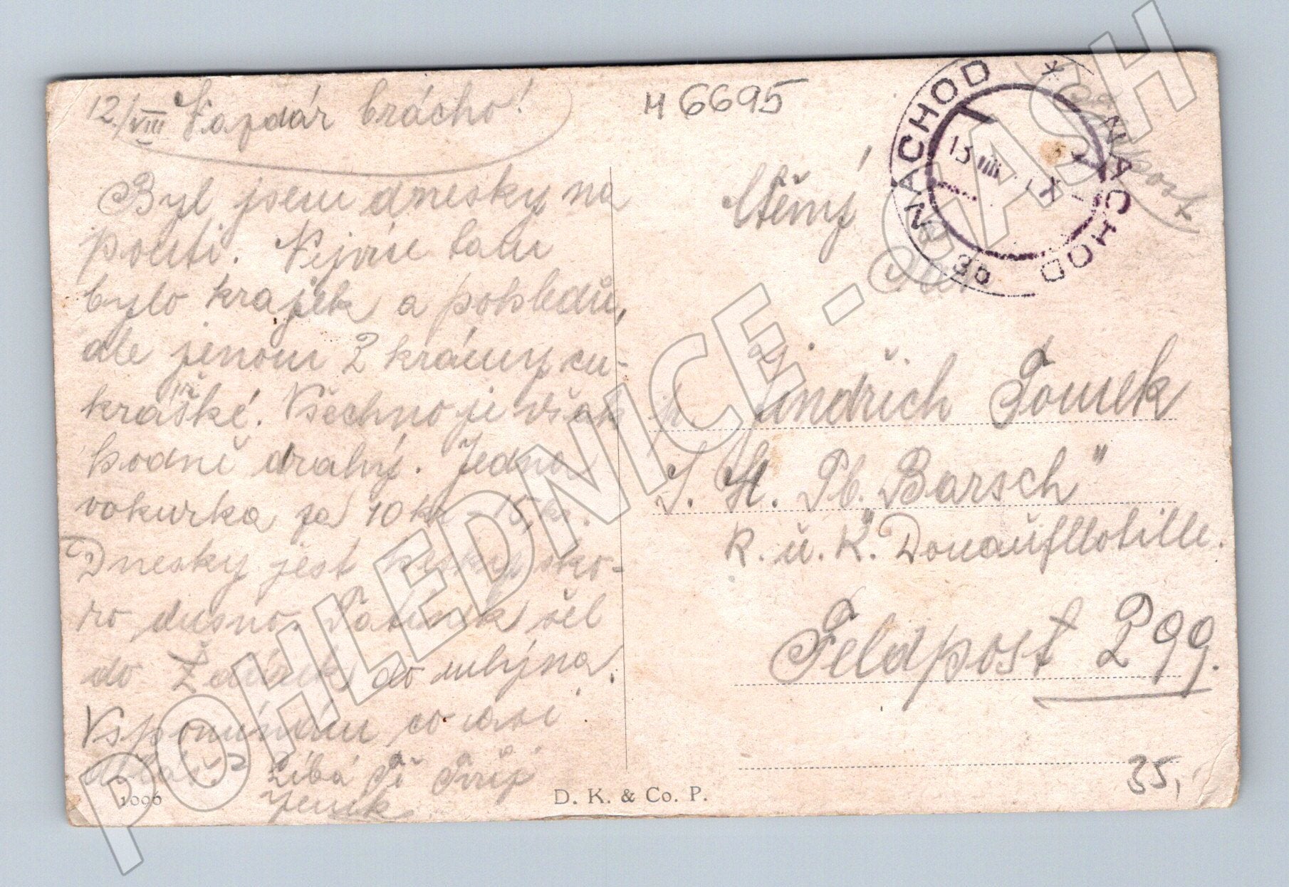 Stará pohlednice Náchod 1917 – Lesní krajina, polní pošta, 1. světová válka