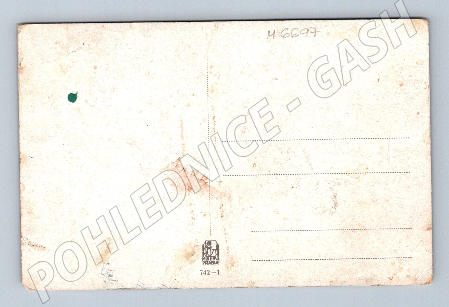 Starší pohlednice – malovaná krajina s ovcemi, Minerva Praha