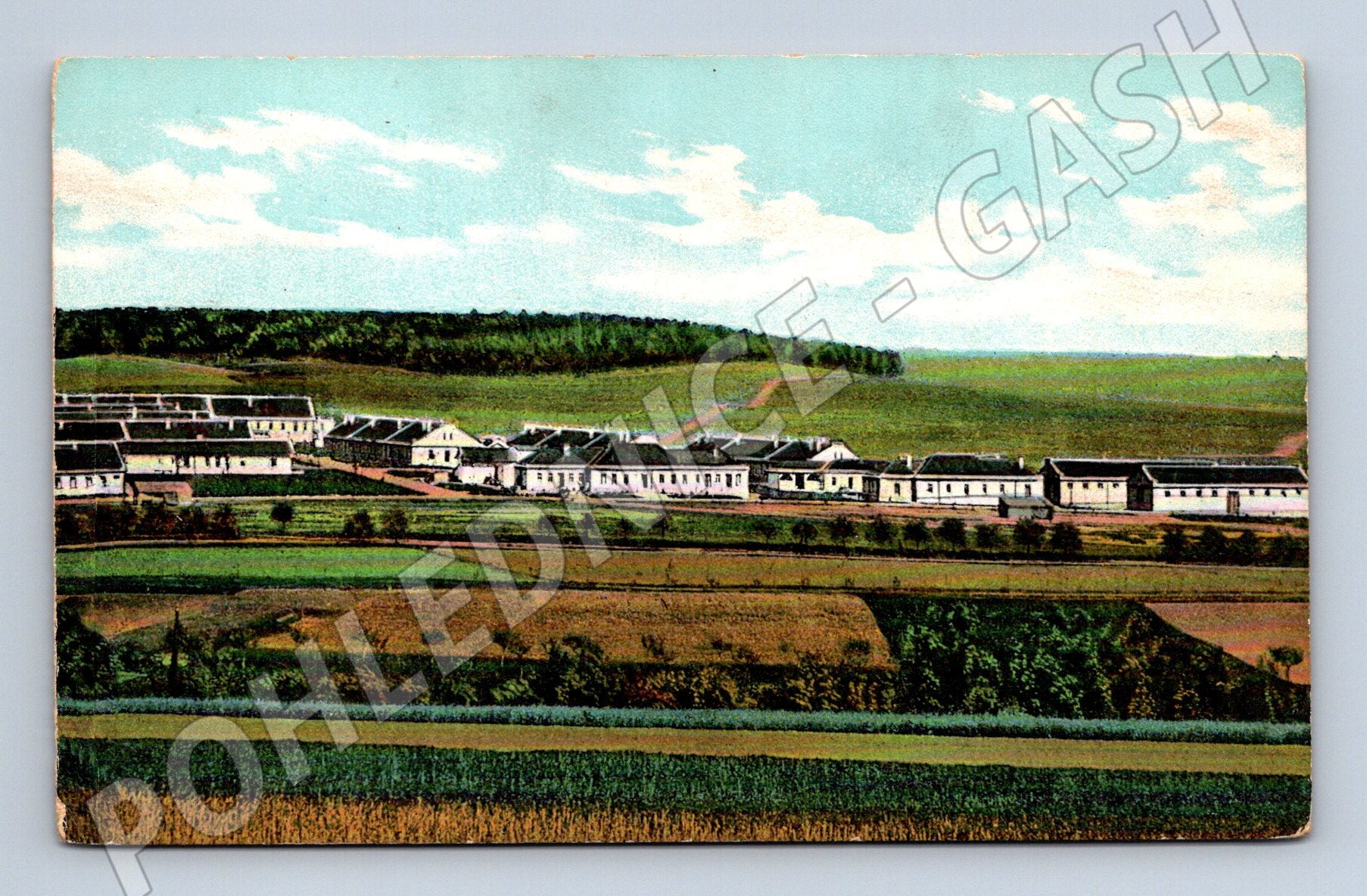 Nabízím starou pohlednici s kolorovaným zobrazením vesnické krajiny a budov, pravděpodobně z období první poloviny 20. století. Pohlednice zachycuje panoramatický pohled na komplex budov v otevřené krajině s poli a lesy v pozadí. Stav pohlednice odpovídá stáří – mírné známky opotřebení a lehké zažloutnutí zadní strany, bez popisu a známky. Velmi zajímavá položka pro sběratele historických pohlednic z období Československa. Malý formát, tisk kolorovanou technikou.