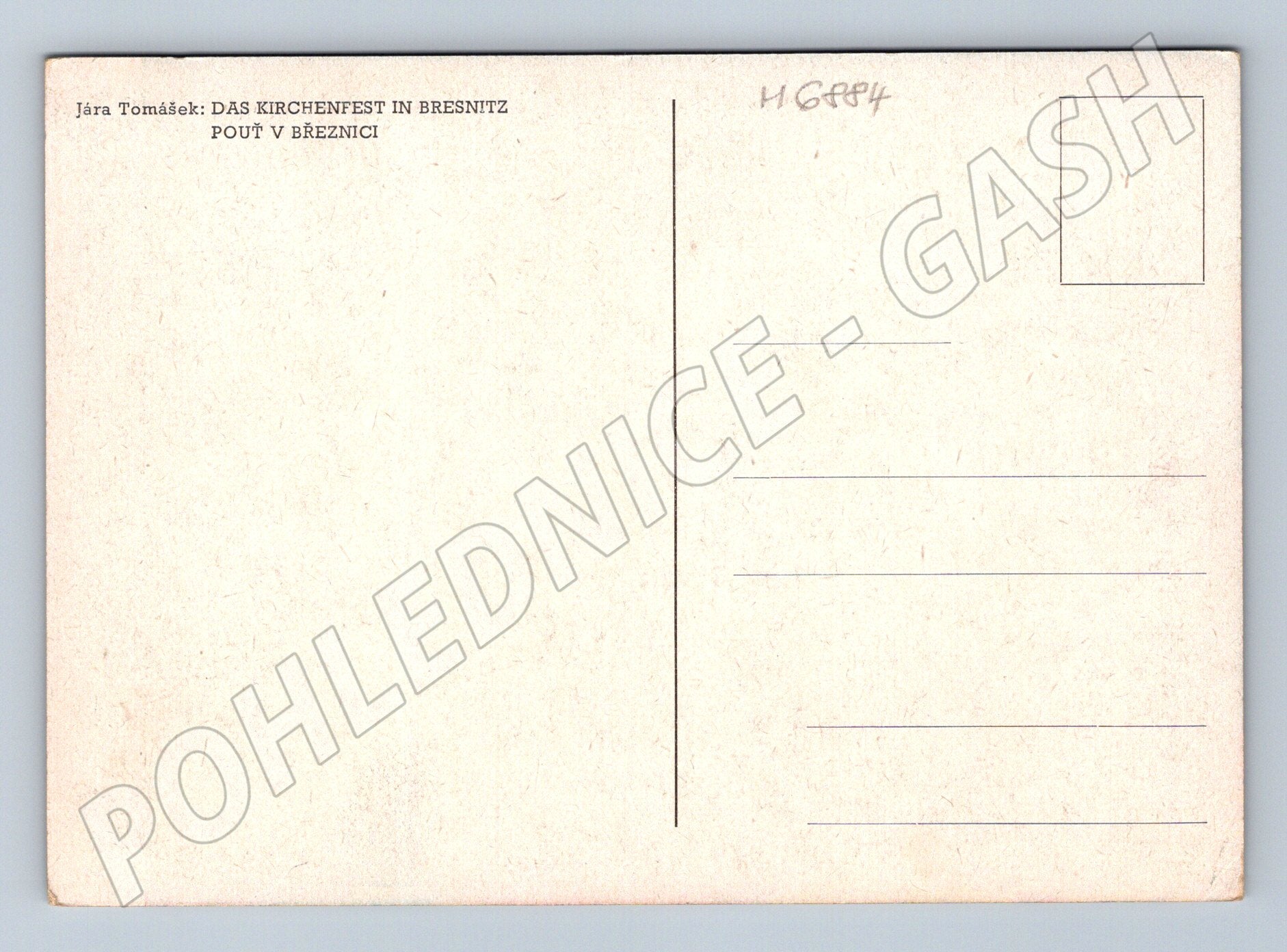 Originální historická pohlednice s motivem pouti v Březnici podle malby Járy Tomáška (DAS KIRCHENFEST IN BRESNITZ / POUŤ V BŘEZNICI). Pohlednice zachycuje atmosféru tradiční české pouti s kolotočem, stánky a návštěvníky v malebném venkovském prostředí. Skvělý sběratelský kousek pro milovníky starých pohlednic, etnografie a české historie. Zadní strana je neprošlá, v původním stavu, s popisem v češtině a němčině. Velmi pěkný stav, bez popisu či známky.