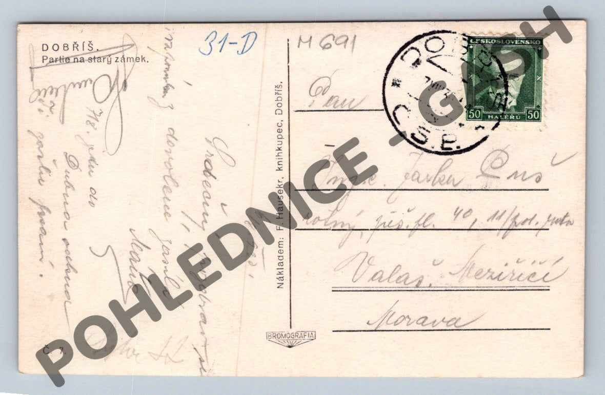 Pohlednice Dobříš partie starý zámek čb ČSR (M691)