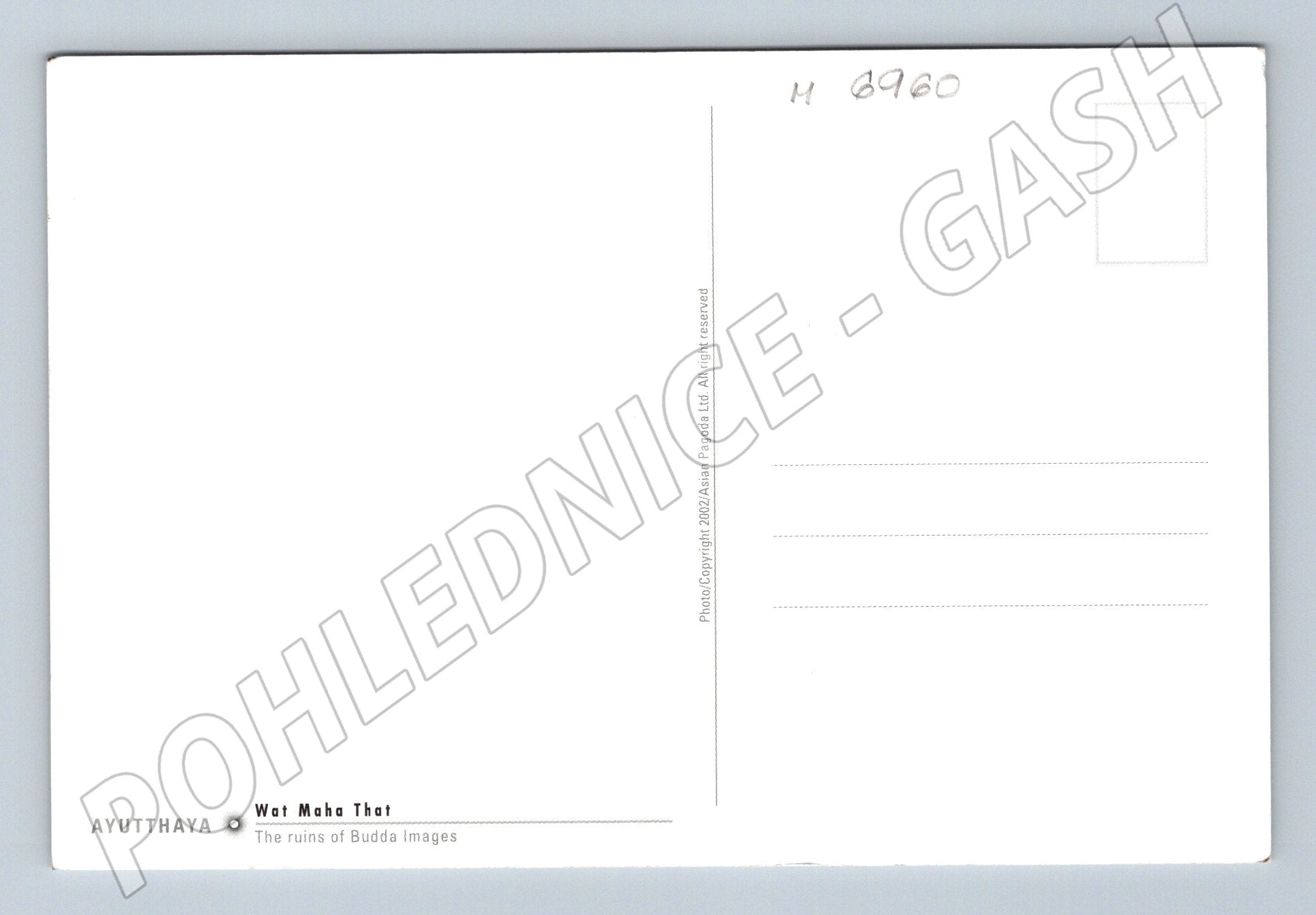 Nabízím originální pohlednici ze série památek v Asii, konkrétně z Thajska – Ayutthaya, chrám Wat Maha That. Pohlednice zachycuje ruiny soch buddhů ve zříceninách tohoto slavného chrámu, což ilustruje atmosféru historického města zapsaného na seznamu UNESCO. Jedná se o černobílou fotografii s působivou hrou světla a stínu. Zadní strana je nepopsaná, ve spodní části je označení AYUTTHAYA Wat Maha That – The ruins of Budda images. Skvělý sběratelský kousek pro milovníky pohlednic nebo orientálních památek.