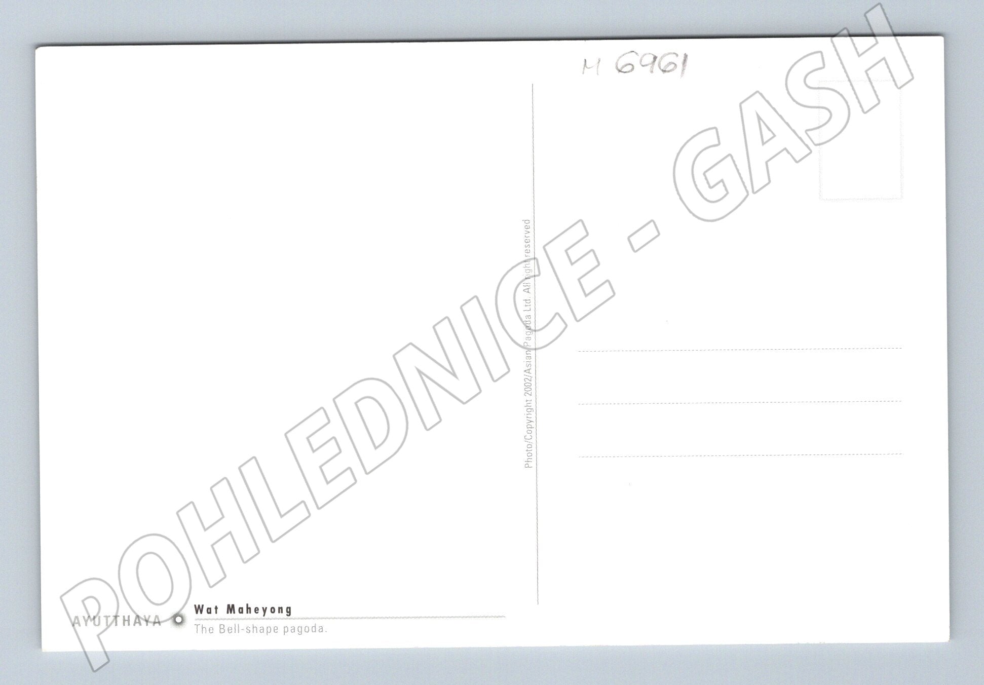 Pohlednice Wat Maheyong, Ayutthaya, Thajsko – zvonovitá pagoda