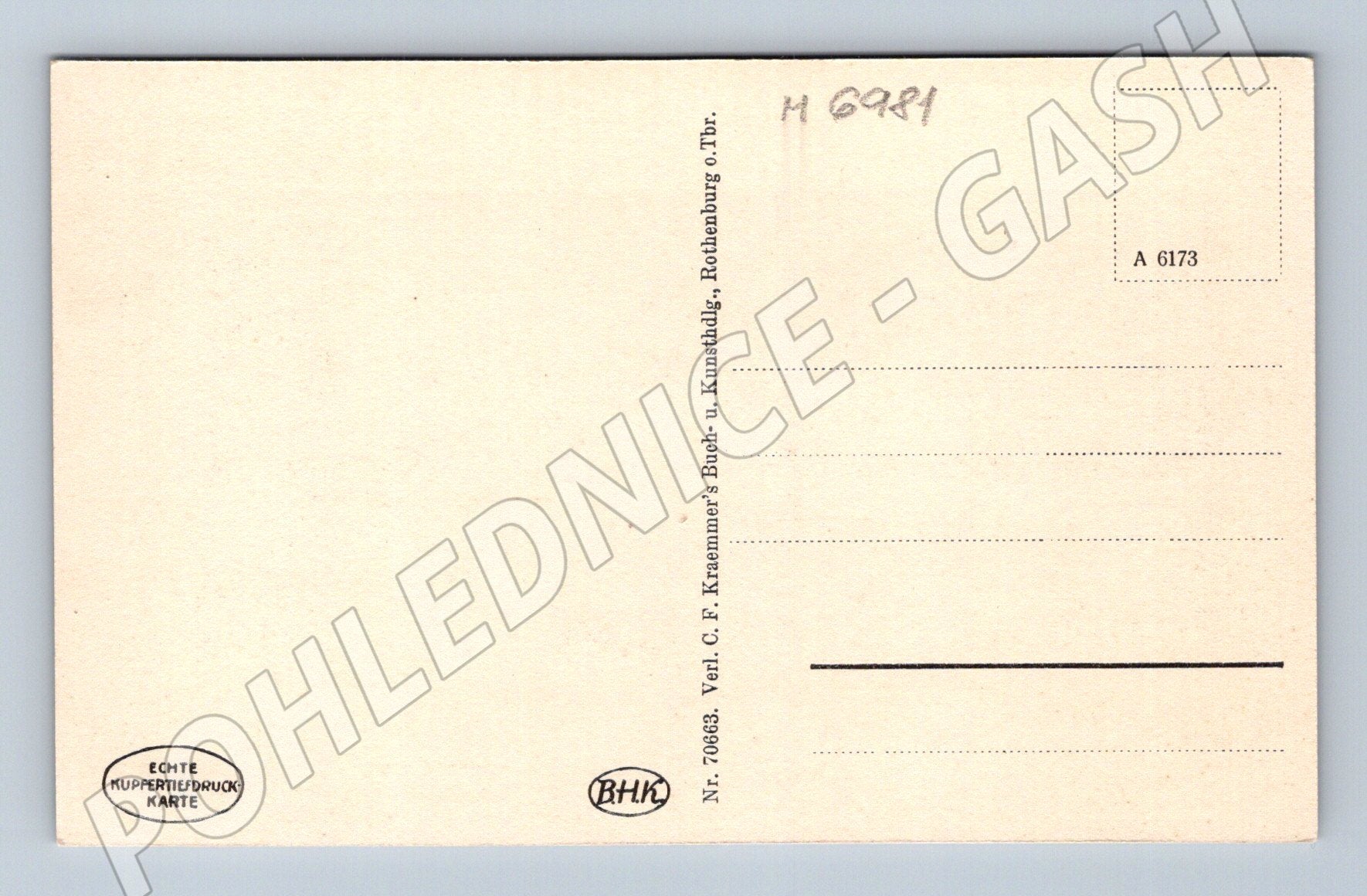 Tato historická pohlednice zachycuje slavnou kunstuhr (umělecké hodiny) na bývalé radniční krčmě ve městě Rothenburg ob der Tauber. V centru pohlednice je vyobrazena unikátní hodinová mechanika se dvěma figurkami v oknech. Pod hodinami je německý popis legendy o obránci města a velkém vinném poháru spojené s rokem 1631 a císařským generálem Tillym. Pohlednice je ve velmi dobrém stavu, neprošlá poštou, na zadní straně je čistá, vhodná do sbírky nebo jako atraktivní dekorativní předmět. Tisk z pravé mědirytiny (Echte Kupfertiefdruck Karte). Vydavatel C.F. Kraemmer, č. 70683. Skvělý sběratelský kousek z Rakouska/Německa!