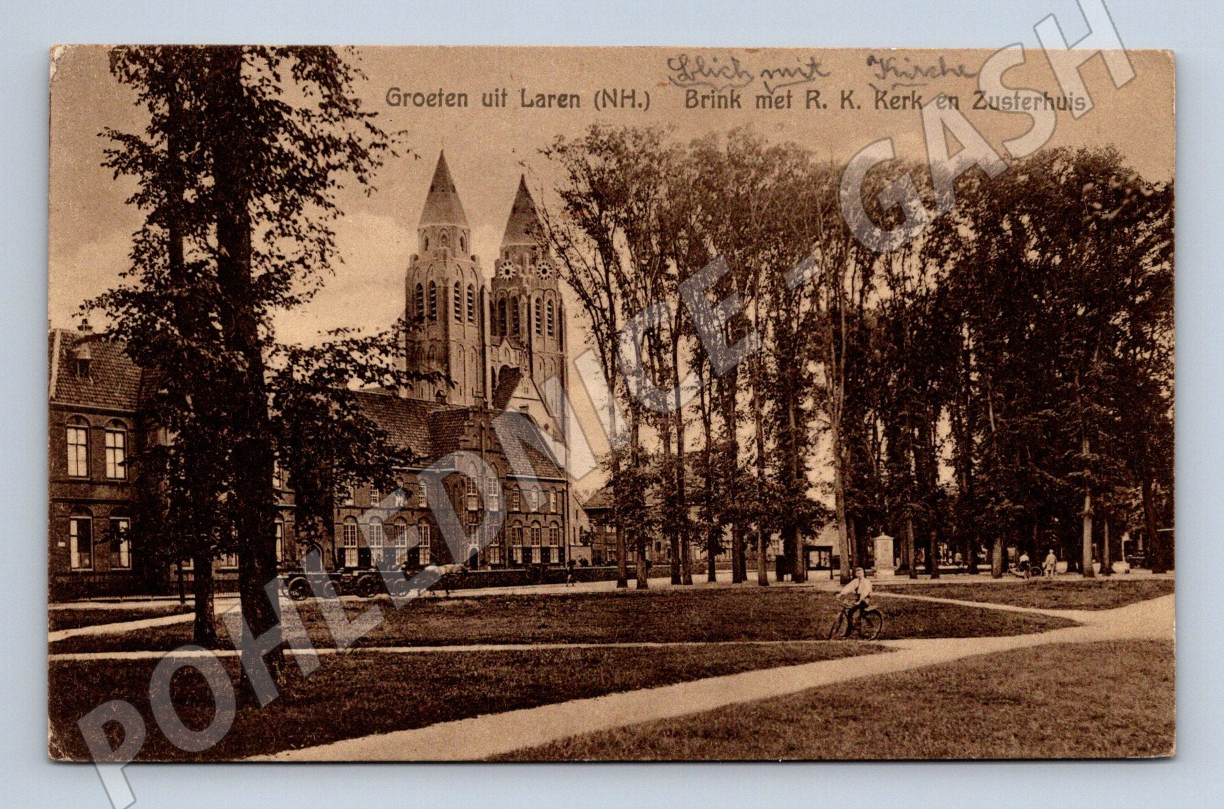 Nabízím originální historickou pohlednici z Nizozemska (Laren, provincie Severní Holandsko) s motivem náměstí Brink s římskokatolickým kostelem a klášterem. Pohlednice je datována razítkem z roku 1930 a byla skutečně odeslaná (prošlá poštou, se známkou a razítkem). Text je psán v němčině a adresována do Vídně, Rakousko. Jedná se o sběratelsky hodnotný kousek zobrazující architekturu a život v meziválečném období. Výborný stav vzhledem ke stáří, mírné opotřebení rohů. Ideální doplněk do sbírky zahraničních pohlednic či historických motivů.