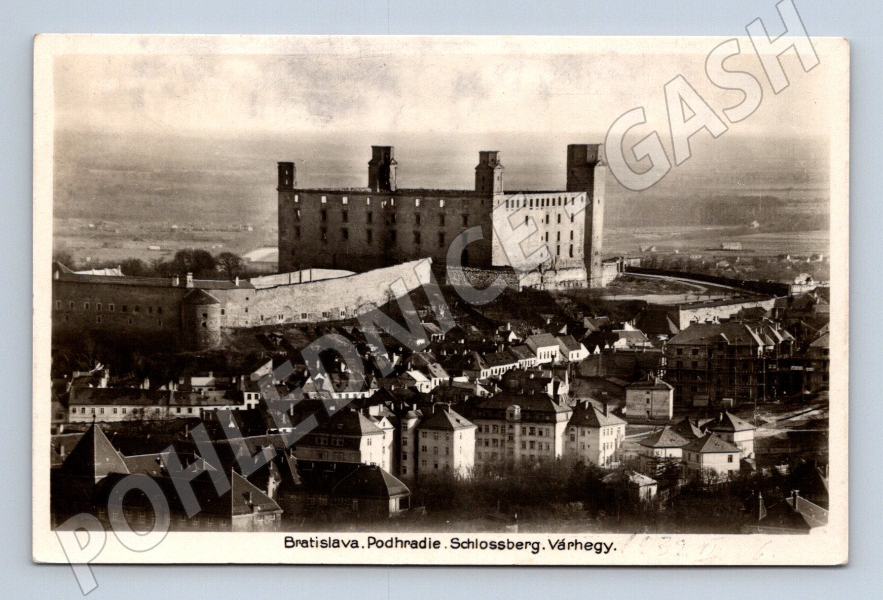 Pohlednice s motivem bratislavského hradu, označená jako Bratislava. Podhradie. Schlossberg. Várhegy . Jedná se o černobílou fotografickou pohlednici zobrazující významnou historickou dominantu Bratislavy a její podhradí. Pohlednice byla odeslána roku 1932 z Bratislavy, což dokládá razítko a dobová známka ČSR v hodnotě 1,20 Kč. Na zadní straně pohlednice je ručně psaný text a adresát ve městě Maria-Zell. Pohlednice je autentickým dokladem meziválečné korespondence a vhodná jak pro sběratele pohlednic, tak pro milovníky slovenských hradů a historických objektů.