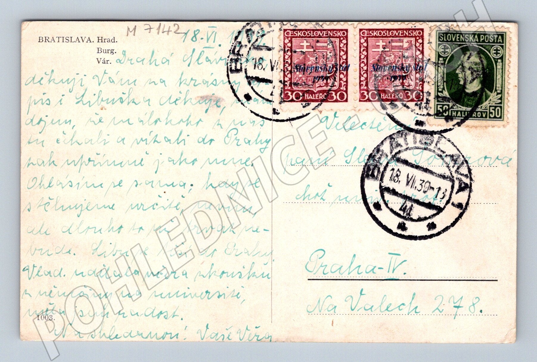 Bratislava – Hrad, stará pohlednice 1939, razítkovaná