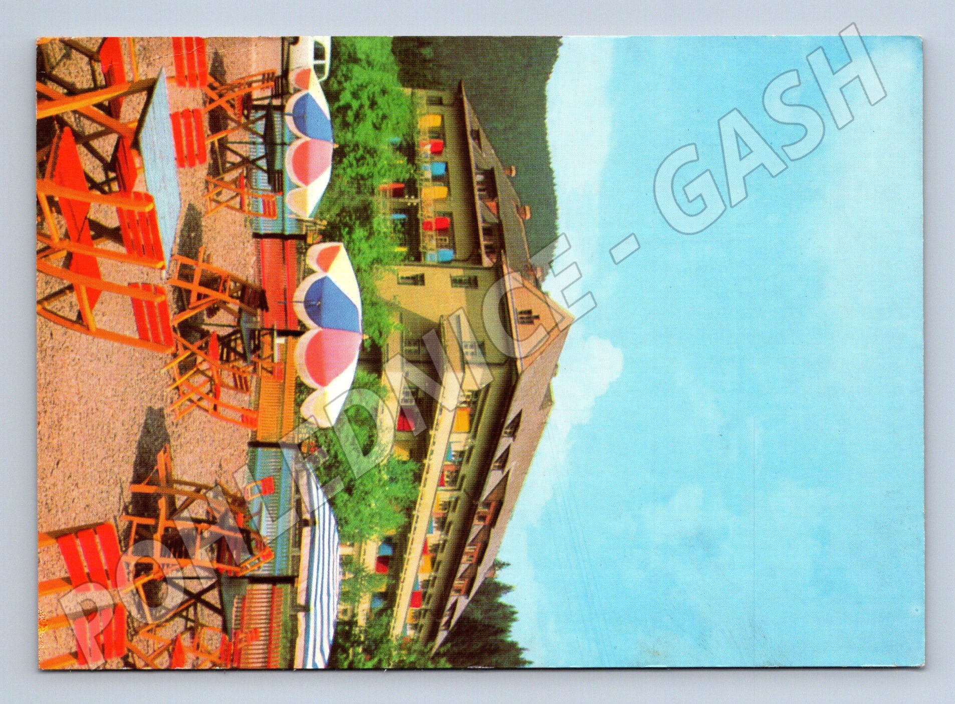 Originální historická pohlednice ze Slovenska, konkrétně z rekreačního areálu ROH Ďumbier v Liptovském Jánu. Na přední straně je barevná fotografie lázeňského domu s venkovním posezením, typické slunečníky a křesílka, kolem budovy vzrostlá zeleň, modrá obloha. Pohlednice byla odeslána, na zadní straně je text v češtině/ruštině, poštovní známka Československo a výrazné razítko. Vydáno před rokem 1950, autorem fotografie je J. Blažek. Skvělý sběratelský kousek dokumentující dobovou rekreaci a architekturu období před rokem 1950. Stav odpovídá stáří – viz foto. Možný sběratelský unikát pro zájemce o slovenské pohlednice.