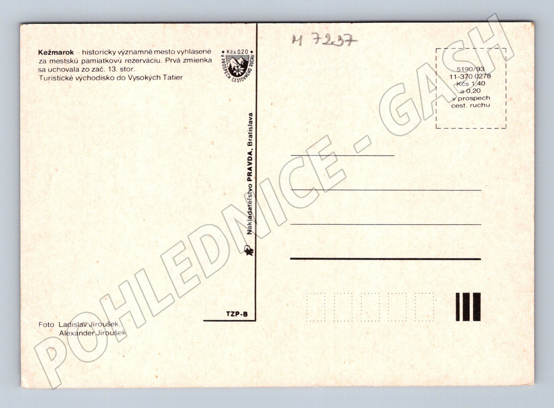 Pohlednice Kežmarok zachycuje historicky významné město, které bylo vyhlášeno městskou památkovou rezervací. První zmínka o městě pochází již ze začátku 13. století. Pohlednice nabízí několik různých pohledů na dominantu města včetně městských budov, hradeb a dalších významných památek. Na zadní straně je krátký popis města a nechybí standardní prostor pro adresu a známku. Vydavatel: Nakladateľstvo PRAVDA, Bratislava. Foto: Ladislav Jiroušek, Alexander Jiroušek. Výborný sběratelský kus z období Československa, vhodný pro milovníky historie a slovenských památek.