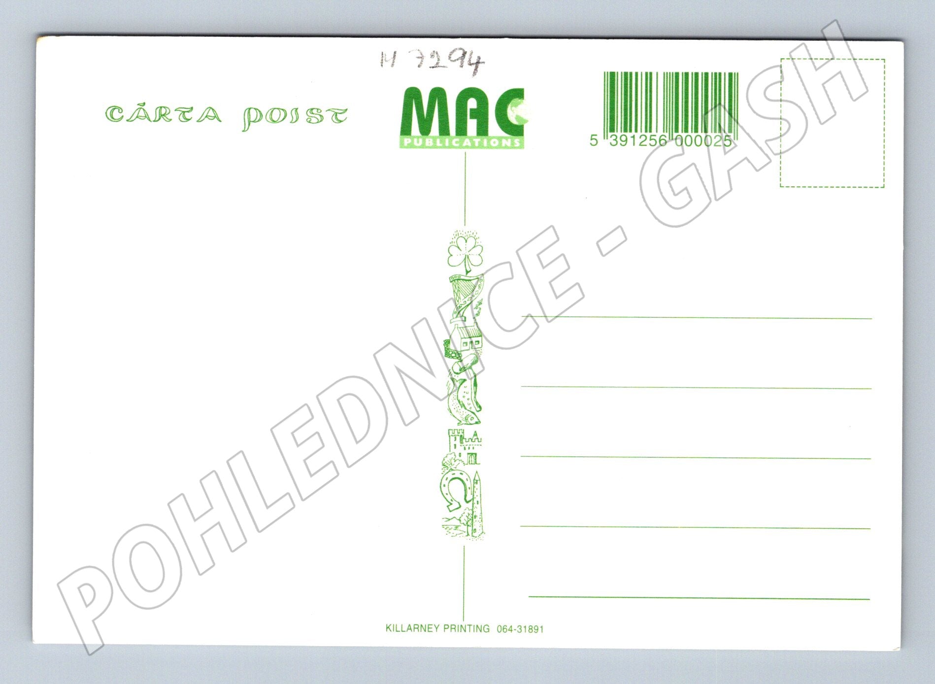 Nabízím pohlednici Kate Kearney’s Cottage, ikonického místa v oblasti Gap of Dunloe, Killarney v Irsku. Na pohlednici je zachycen pohled na tradiční irskou chalupu s venkovním posezením, obklopenou krásnou přírodou a horami v pozadí. V levém horním rohu je detail vstupního vchodu. Pohlednice je neprošlá poštou a ve velmi dobrém stavu, čistá bez popisu. Vydavatel: Mac Publications, zadní strana ve stylu klasické pohlednice, s možností nadepsání adresy a vzkazu. Skvělý sběratelský kousek pro milovníky Irska a evropských památek.