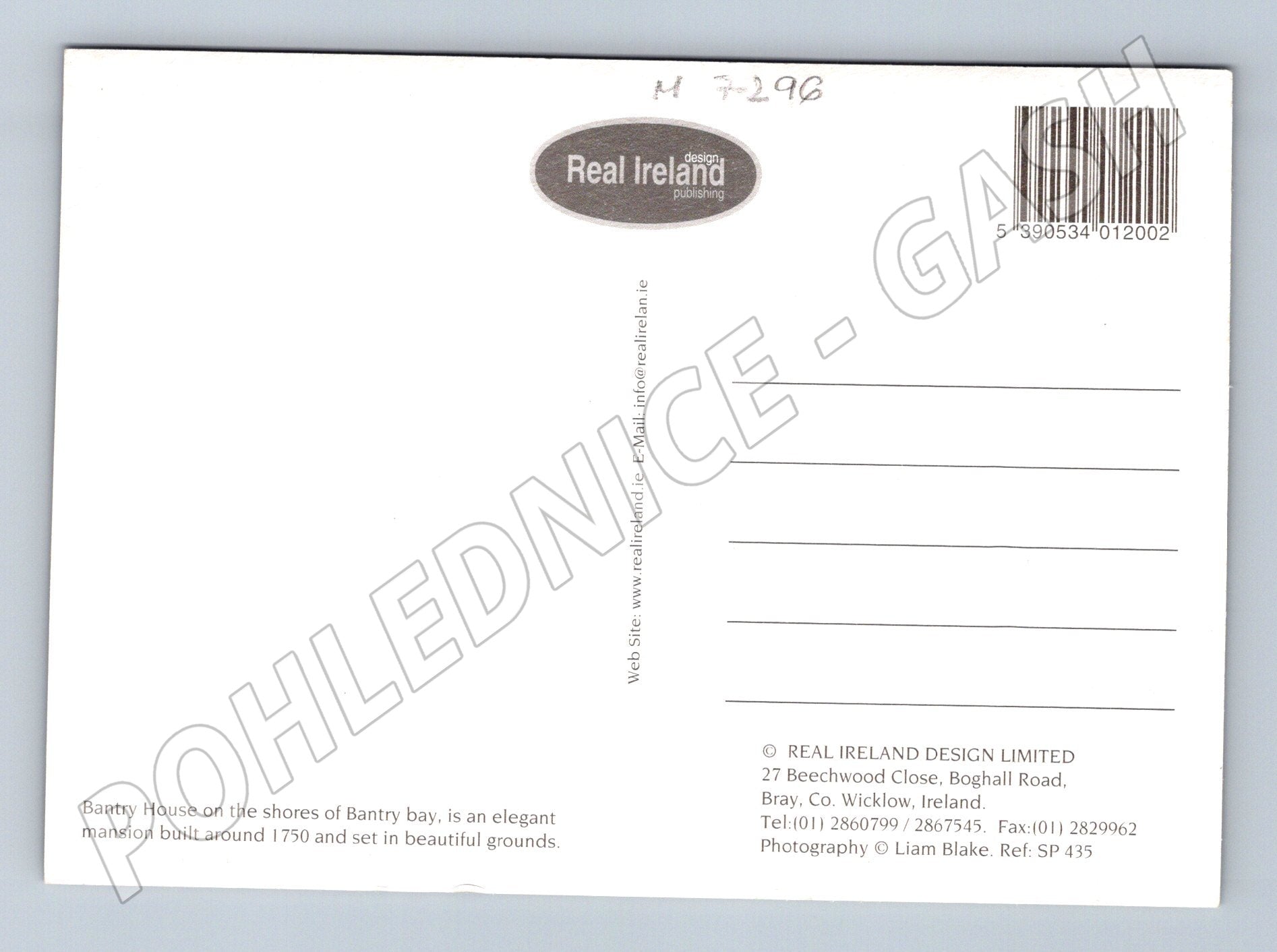 Nabízím originální pohlednici s motivem Bantry Bay v Irsku. Na pohlednici je zachycena nádherná krajina s poklidnou zátokou, zelenými loukami a typickými venkovskými domy. V popředí je modrá vodní plocha, v pozadí se zvedají mlhou zahalené kopce. Pohlednice je neprošlá poštou, ve velmi pěkném stavu, bez popisků či poškození na přední straně. Na zadní straně naleznete stručný popis: Bantry House on the shores of Bantry bay, is an elegant mansion built around 1750 and set in beautiful grounds. Vydavatel: Real Ireland Design Limited. Krásný sběratelský kousek z Irska.