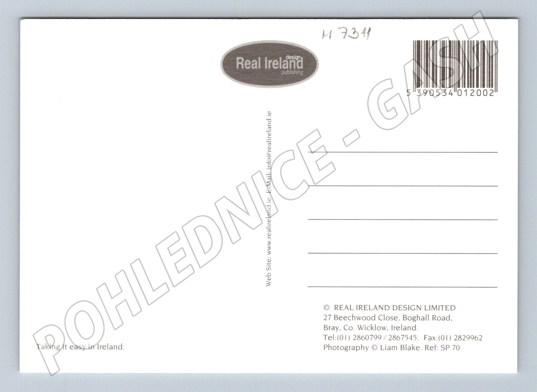 Barevná pohlednice s názvem Rush Hour Ireland zachycuje typickou irskou venkovskou scénu – stádo krav na úzké silnici u pobřeží. Na pozadí lze vidět zelené pastviny, útesy a moře, v popředí pak ženy vedoucí krávy po silnici, kolem projíždějí automobily. Jedná se o humorné ztvárnění irské špičky na silnicích. Pohlednice nebyla použitá (neprošlá poštou), ve výborném stavu. Vydavatel: Real Ireland Design Limited. Vhodné pro sběratele tématiky zvířat, venkova, Irska nebo evropských zemí.