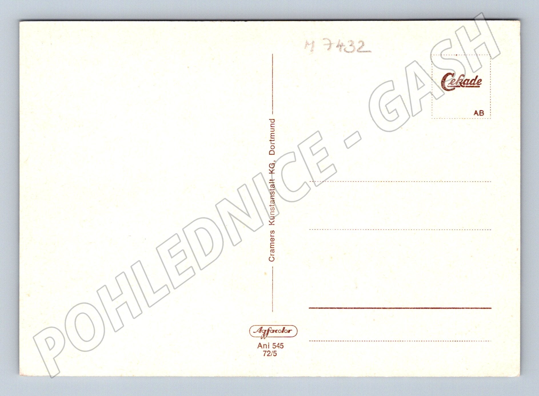 Pohlednice s více fotografiemi známého hradu Reichsburg Trifels ležícího u města Annweiler v oblasti Pfalz, Německo. Na pohlednici jsou zachyceny jak exteriéry, tak interiérové části hradu, včetně krásných pohledů na okolní krajinu. Hrad Trifels je významnou historickou památkou, známou mj. jako místo, kde byl vězněn anglický král Richard Lví srdce. Pohlednice je nepopsaná, čistá, rozměr klasický, výrobce Cramers Kunstanstalt KG Dortmund, č. 545 72/5, barevná. Perfektní doplněk do sbírky zaměřené na hrady a zámky nebo německé památky.