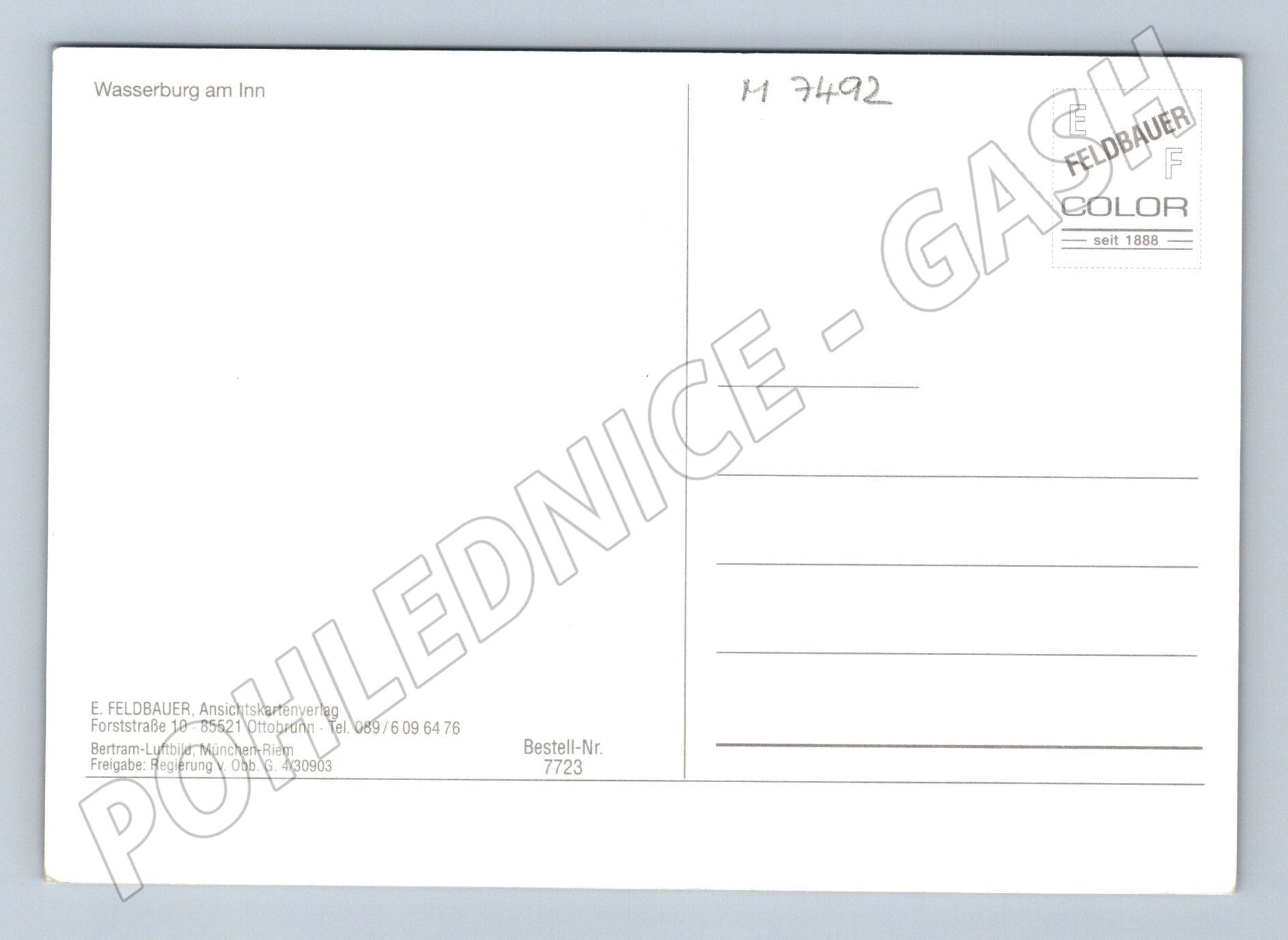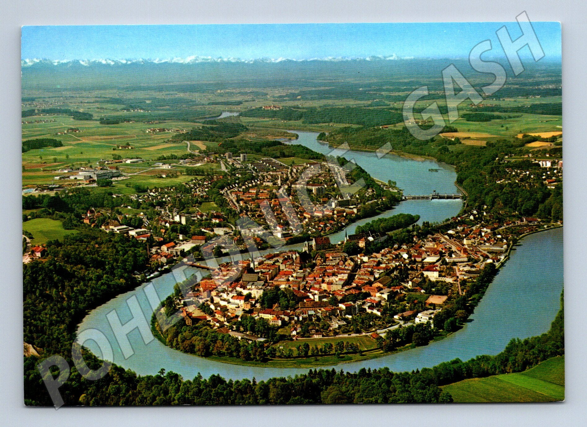 Nabízím originální barevnou pohlednici s leteckým pohledem na město Wasserburg am Inn v Německu. Na pohlednici je zřetelně vidět malebné historické centrum města, které se nachází na poloostrově obklopeném řekou Inn, stejně jako okolní krajina s Alpami v pozadí. Pohlednice je neprošlá poštou, ve velmi dobrém stavu. Vydal: E. Feldbauer, Ottobrunn. Ideální přírůstek do sbírky pohlednic z Německa, vhodná také pro milovníky architektury, krajiny či historických měst.