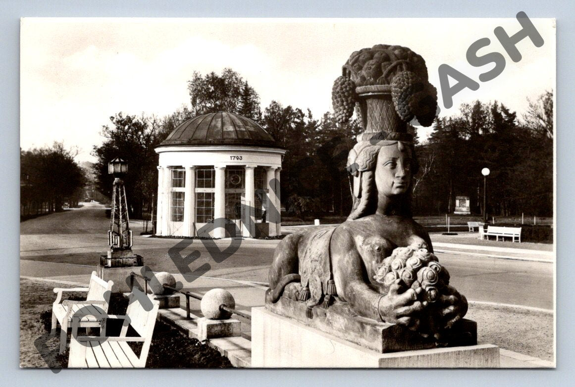 Nabízím sběratelskou černobílou pohlednici s motivem Františkových Lázní, konkrétně Františkova pramene. Pohlednice je v dobrém stavu, na zadní straně je vytištěn název a známka Československa s portrétem. Ornamentální socha sfingy s ženskou hlavou a květinovým věncem, stojící před charakteristickou kolonádou pramene, ukazuje krásu lázeňského města. Ideální pro milovníky historie, architektury a pohlednic z oblasti českých lázní.