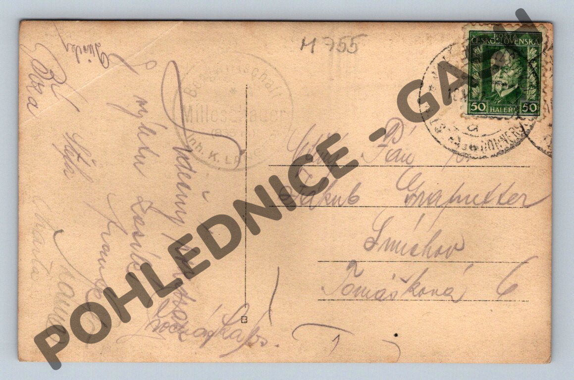 Nabízím sběratelskou pohlednici s motivem hradu Milštejn (německy Milleschauer). Pohlednice je datována a opatřena poštovní známkou Československa s hodnotou 50 haléřů. Fotografie zachycuje hradní zříceninu při západu slunce, což dodává obrázku tajemnou a nostalgickou atmosféru starých časů. Pohlednice je dobová, má známky opotřebení, včetně kosmetických prasklin a zažloutnutí, které svědčí o její autenticitě a stáří. Ideální doplněk do sbírky pohlednic s historickou a architektonickou tematikou.