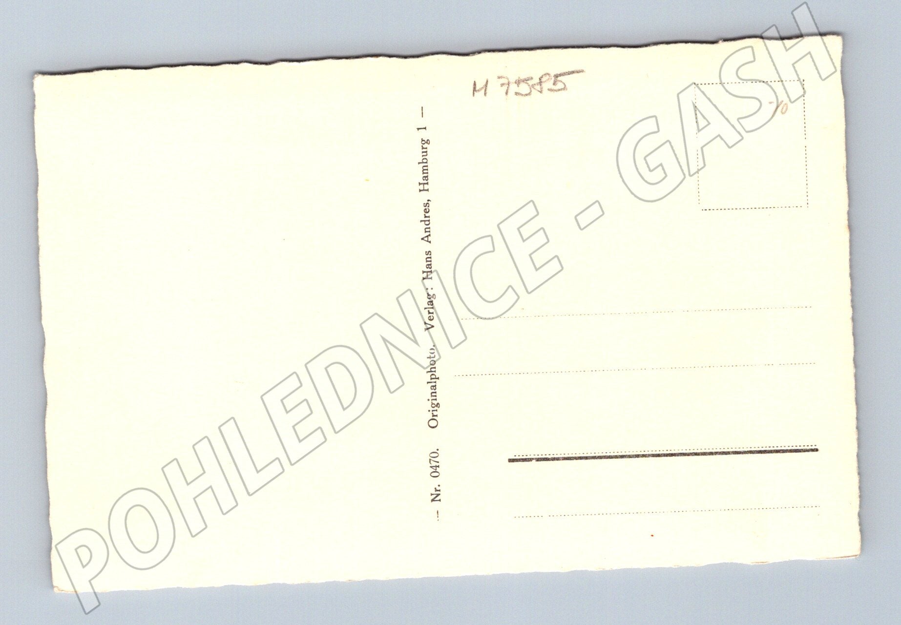 Originální historická pohlednice zachycující přístavní scenérii v Hamburku s množstvím lodí včetně velké osobní lodi a menších parníků. Vlevo dominuje přístavní hodinová věž a na pravé straně jsou lodě i říční doprava. Pohlednice je vydána nakladatelstvím Hans Andres, Hamburg, číslovaná jako Nr. 0470. Na zadní straně je typické rozvržení pro psaní adresy a známku. Pohlednice není použitá, ve velmi dobrém stavu. Tato pohlednice je vhodná pro sběratele lodní a přístavní tematiky nebo milovníky starých městských záběrů.