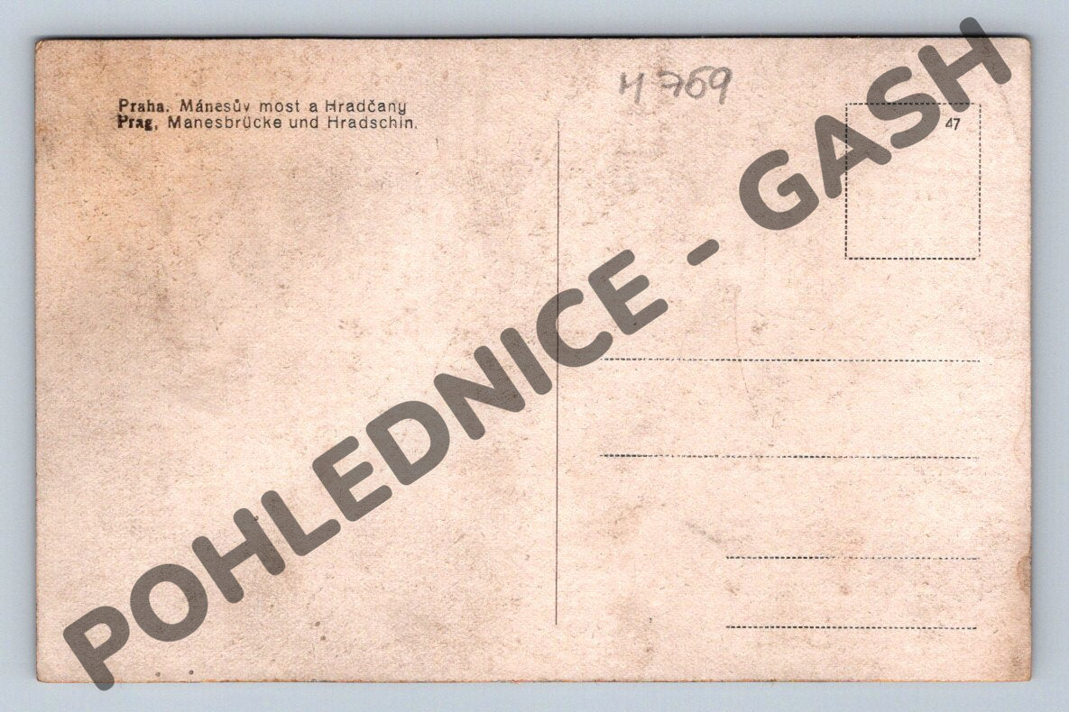Starý pohled - Praha Mánesův most a Hradčany, historická pohlednice