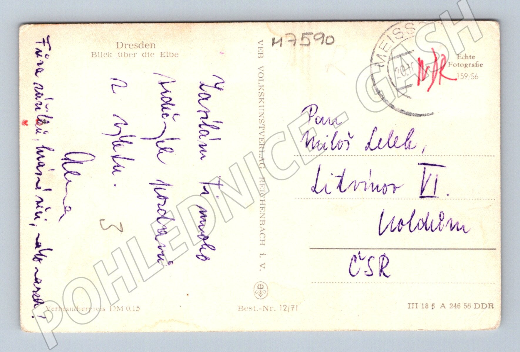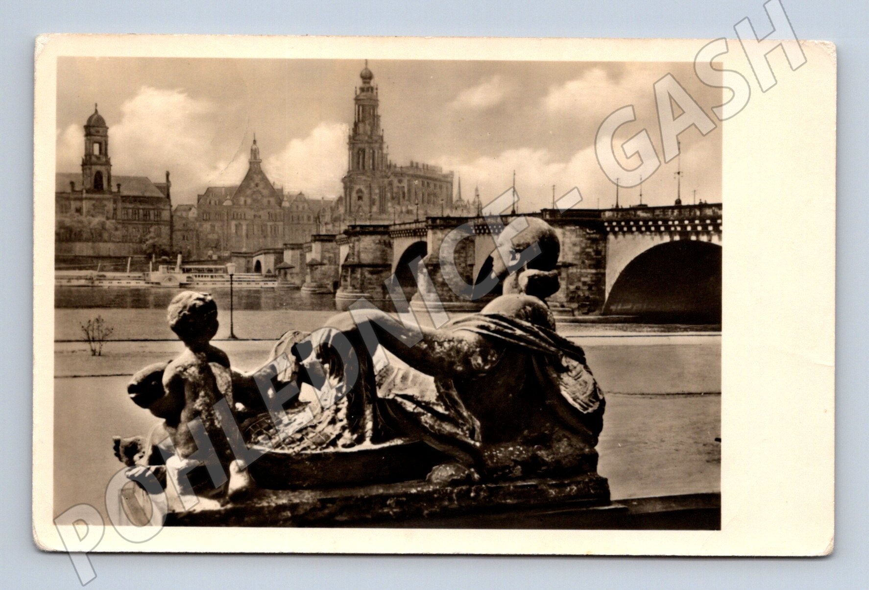 Nabízím starou pohlednici s motivem panoramatu města Drážďany (Dresden) nad řekou Labe. Na přední straně je černobílý pohled s detailní sochou v popředí a známou architekturou města v pozadí, včetně mostu přes Labe. Pohlednice je použita, prošla poštou, na zadní straně je rukopisný vzkaz, poštovní razítko a adresa do tehdejšího Československa. Jedná se o autentickou fotografii s dobovou atmosférou a známkami stáří. Vhodné pro sběratele historických pohlednic, fanoušky Drážďan nebo jako retro dekorace.