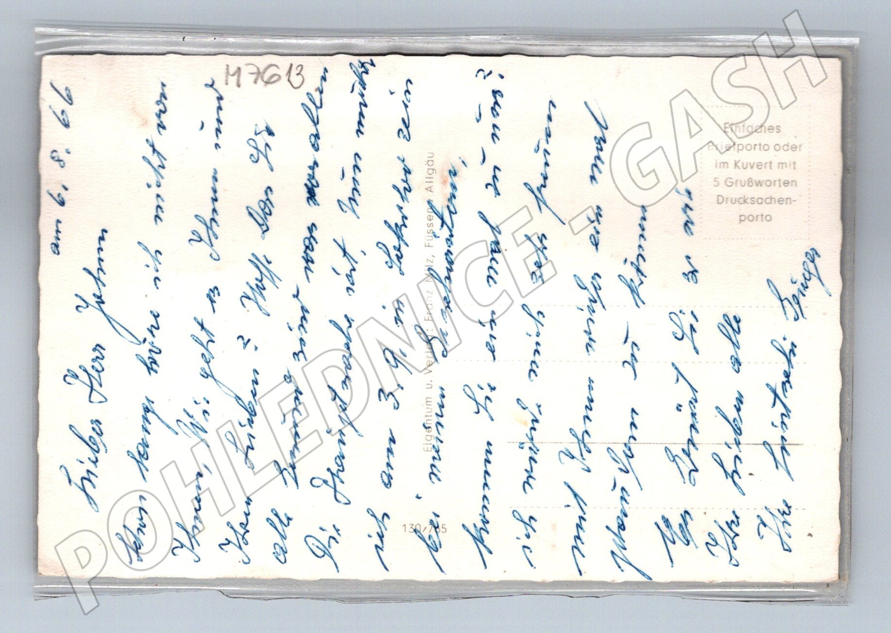 Originální německá pohlednice ze Schongau (Bavorsko, Německo), s motivem panoramatu města a okolních Alp. Pohlednice je ozdobena skutečnou sušenou květinou protěže (Edelweiß) a nápisem Ein echter Edelweiß-Gruß (Pravý pozdrav s protěží). Na zadní straně je ručně psaný text v němčině. Výjimečná sběratelská pohlednice s přírodní dekorací, vhodná pro milovníky historických pohlednic i jako zajímavost do sbírky. Stav odpovídá stáří, viz scan.