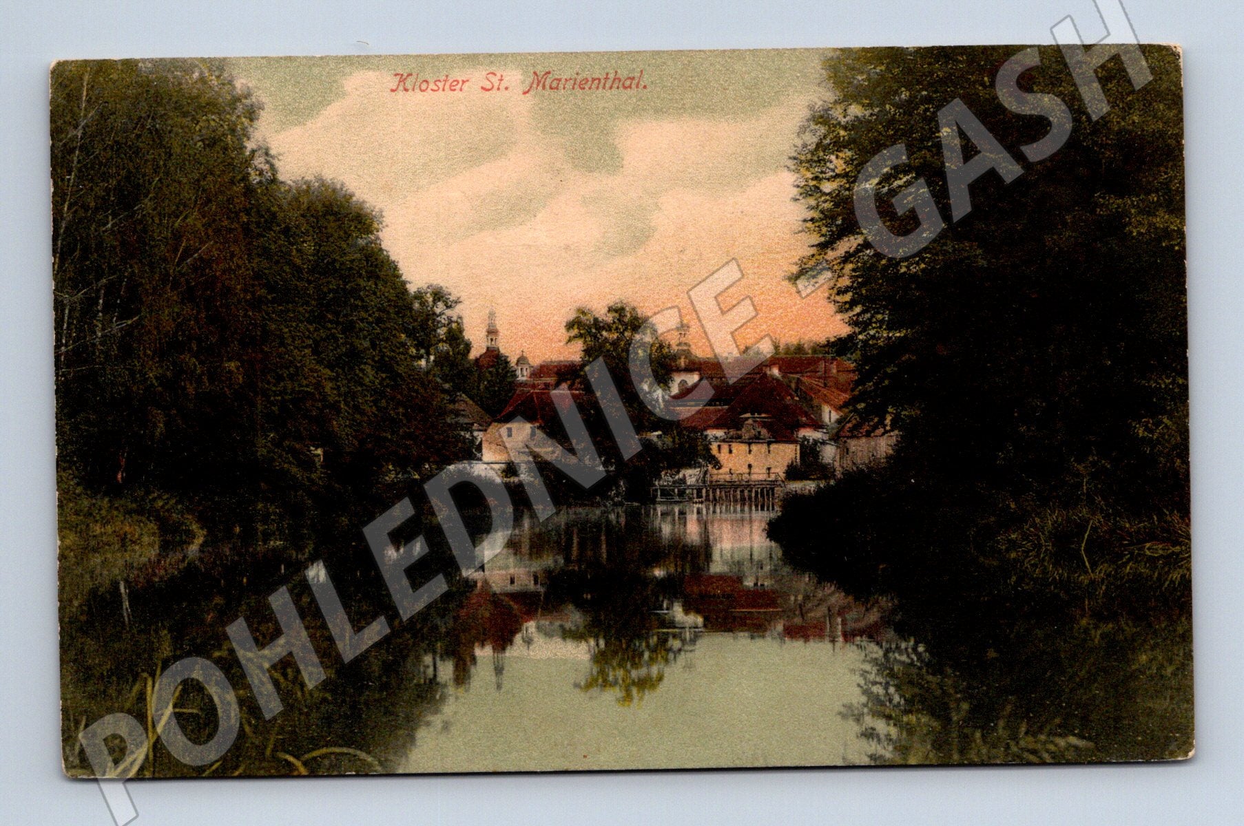 Originální stará pohlednice s motivem Kloster St. Marienthal . Pohlednice zobrazuje krásný pohled na klášter svaté Marienthal v malebné krajině u řeky, s barevným nádechem západu slunce a zrcadlením objektů na vodní hladině. Zadní strana pohlednice je vyplněná, včetně známky Německé říše a poštovního razítka. Vydavatel: H. Richter, Zittau. Stav pohlednice odpovídá stáří, vhodné pro sběratele historických pohlednic, milovníky Německa či pamětihodností. Skvělý kousek do sbírky!