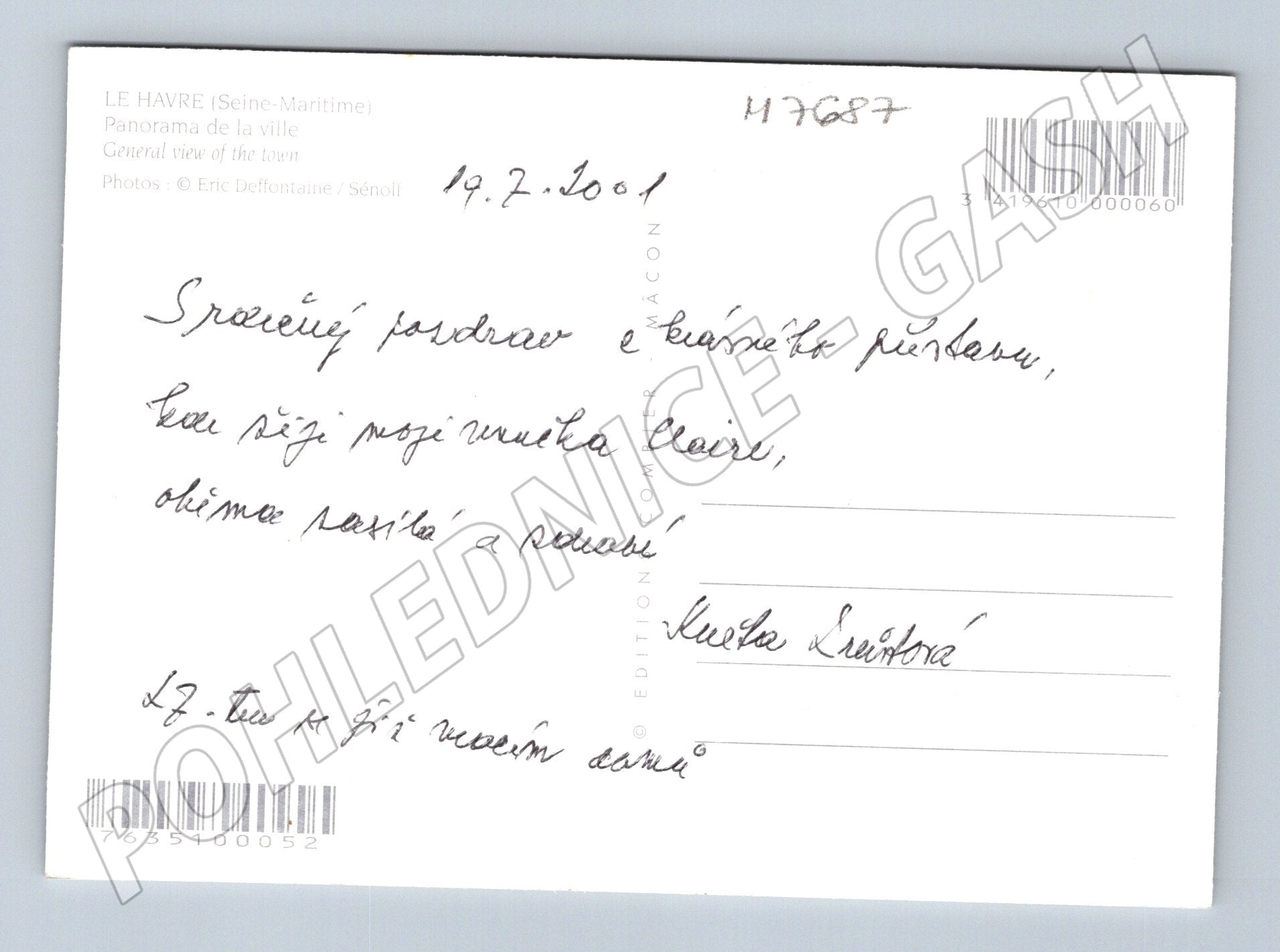 Originální pohlednice z francouzského města Le Havre. Na přední straně jsou kolážovité snímky významných míst, například přístav, moderní most, městské parky s fontánami, květinová zahrada a jezero s labutěmi. Tato pohlednice skvěle ilustruje atmosféru města Le Havre, které je přímořským městem známým svými moderními stavbami a krásnou přírodou v okolí. Zadní strana je popsaná a datovaná, zachovává autentičnost a sběratelskou hodnotu. Vhodná pro sběratele francouzských pohlednic, regionální historie nebo milovníky pohlednic z Evropy.