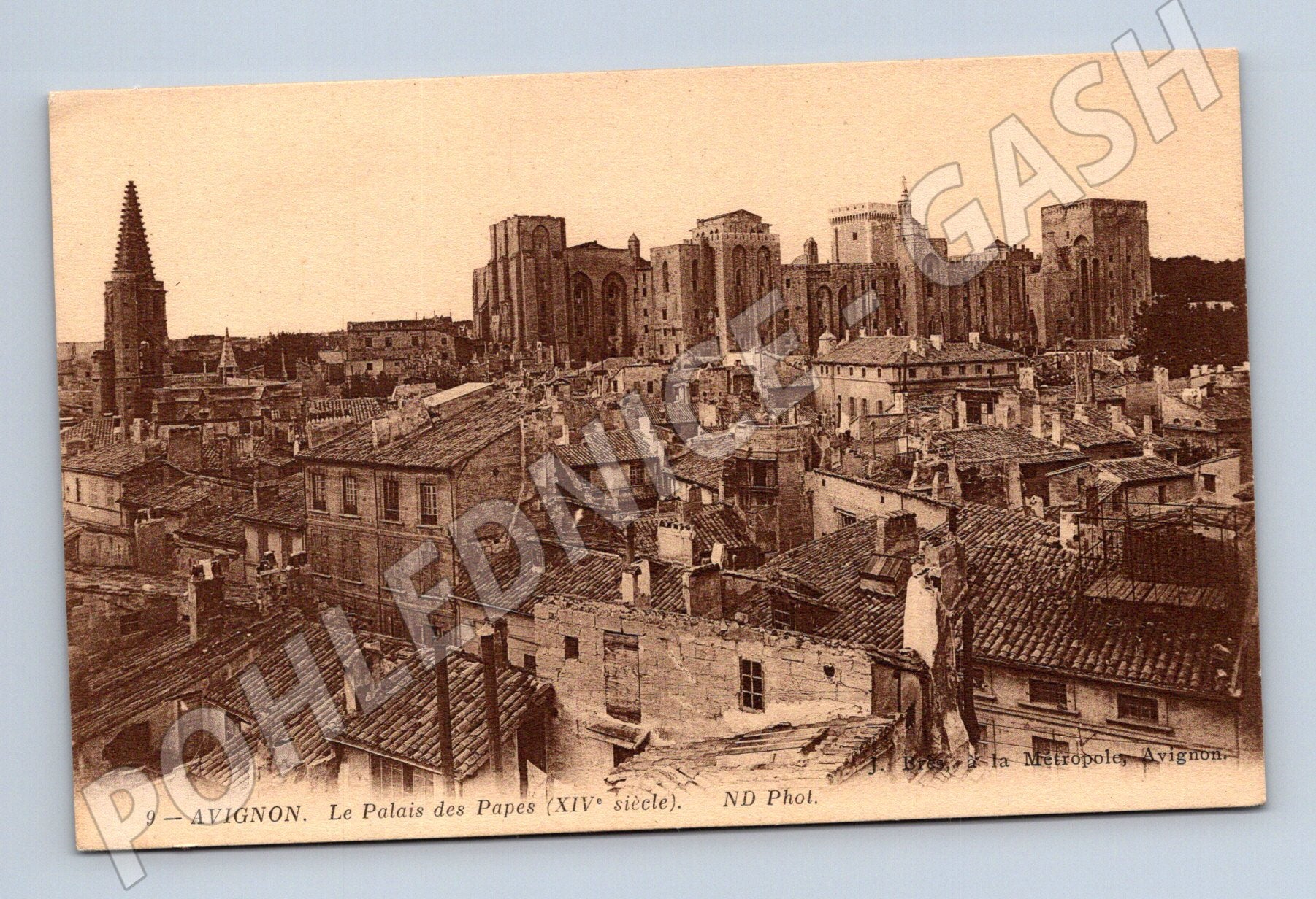 Originální stará pohlednice s pohledem na slavný Palais des Papes v Avignonu (14. století), která zobrazuje historické centrum tohoto významného francouzského města. Pohlednice je v sepia tónu a skvěle zachycuje atmosféru dávné architektury a střech domů v popředí s monumentálním palácem v pozadí. Pohlednice je neprošlá poštou, její stav je velmi dobrý, bez výrazného poškození, ideální pro sběratele historických pohlednic z Francie nebo milovníky architektury a historie. Zadní strana je čistá, s univerzálním označením Carte Postale, vhodné pro další popis či zaslání.
