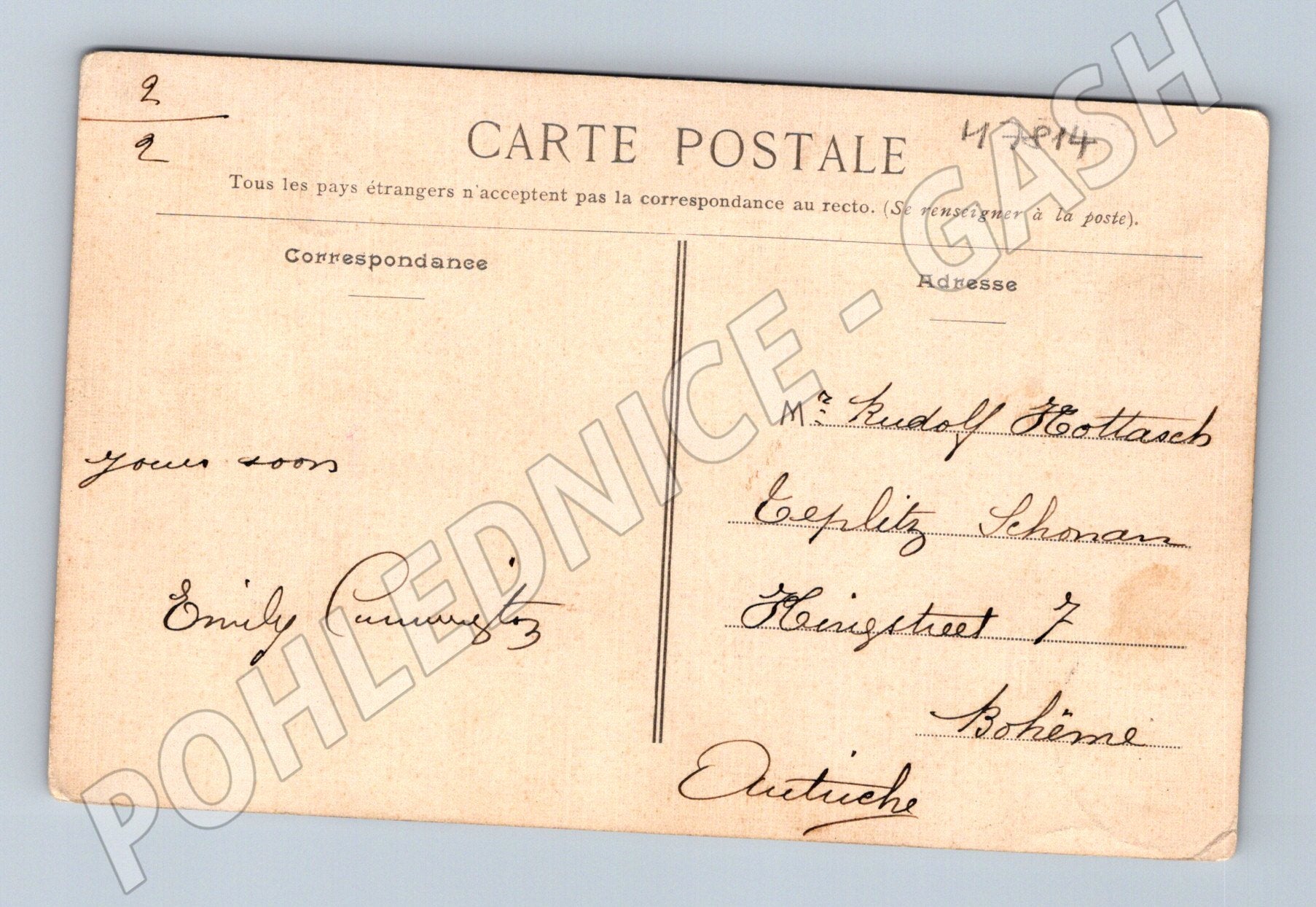 Originální pohlednice s barevným motivem katedrály v městě Evreux, Francie – EVREUX – La Cathédrale . Pohlednice je frankovaná francouzskou známkou a byla odeslána do tehdejšího Rakousko-Uherska (Böhmen/Čechy, dnešní Česká republika). Na zadní straně je ručně psaný text a adresa adresáta. Celkový stav odpovídá stáří, pohlednice nese známky běžného opotřebení, drobné ohyby v rozích a opotřebení hran. Výjimečný sběratelský kousek s historickou i filatelistickou hodnotou.