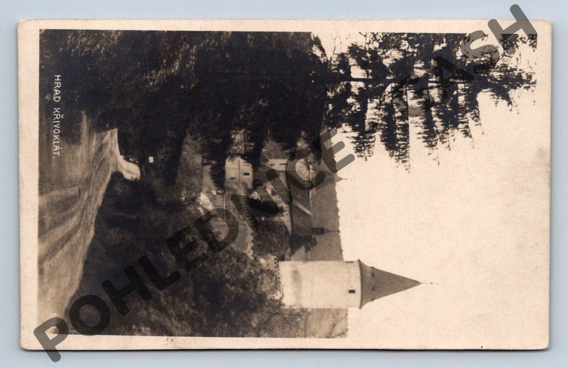 Starý pohled na hrad Křivoklát - černobílá pohlednice