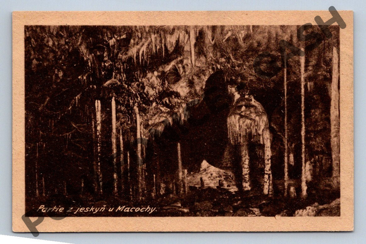 Originální stará pohlednice s motivem Partie z jeskyní u Macochy z oblasti Moravského krasu. Pohlednice je ve velmi dobrém stavu, nepopsaná, s čistou zadní stranou určenou pro adresu a známku. Krásná ukázka historického pohlednicového formátu, vhodná pro sběratele nebo milovníky českých přírodních památek. Tato pohlednice zachycuje unikátní pohled do slavné jeskyně poblíž propasti Macocha, s detailní kresbou krápníkové výzdoby.