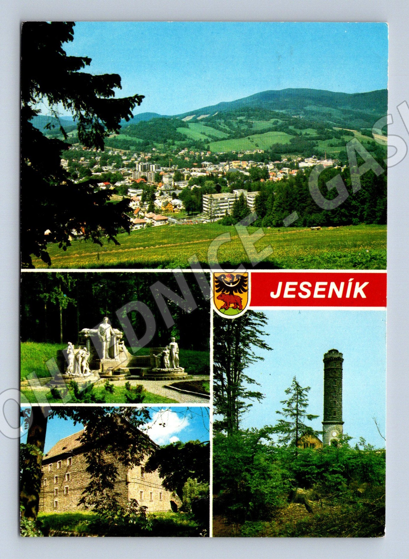 Pohlednice Jeseník koláž známka razítko 1979 (M8241)