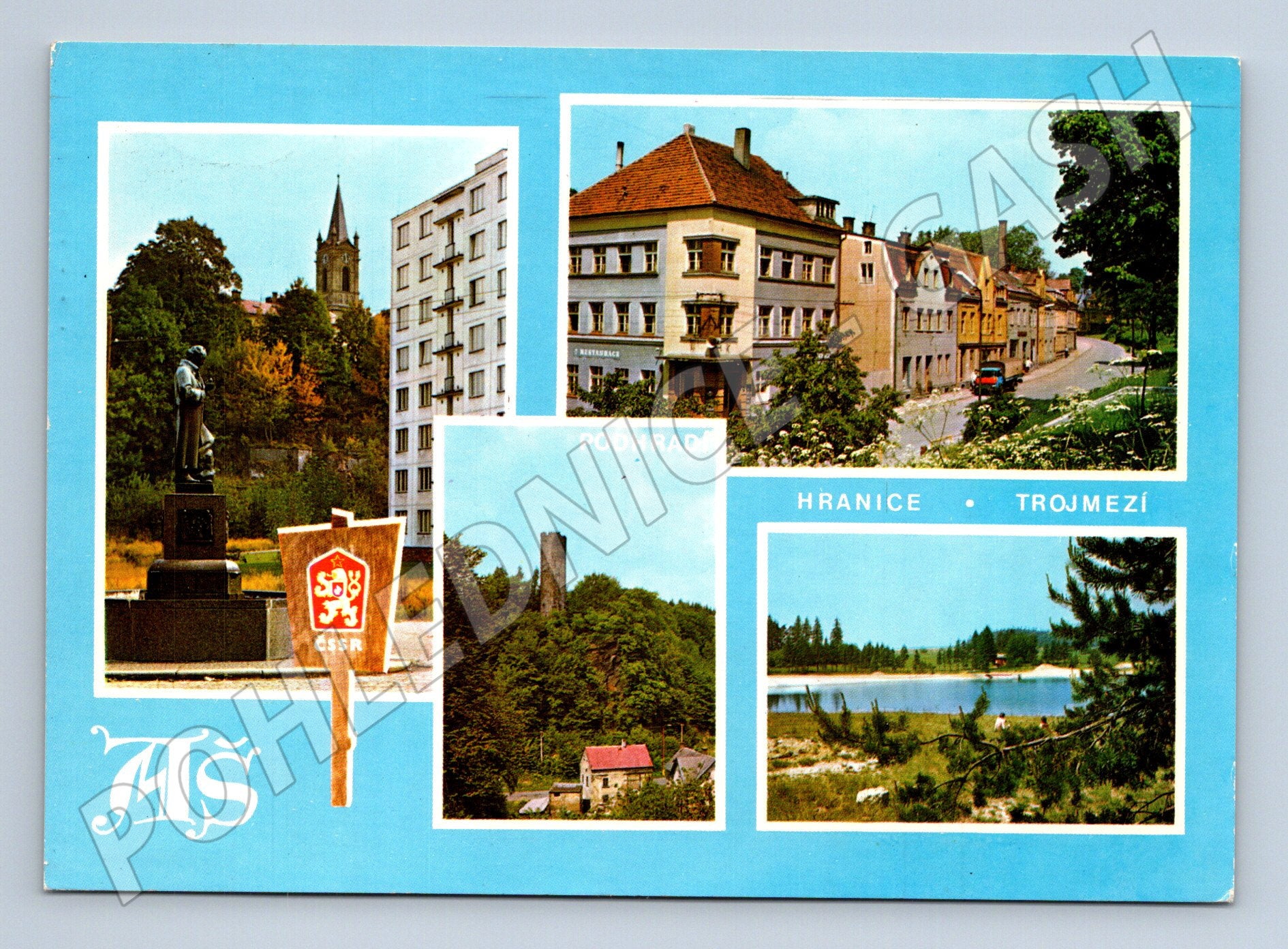 Staré pohlednice Aš, Podhradí, Hranice, Trojmezí – vícezáběrová, známka 1979