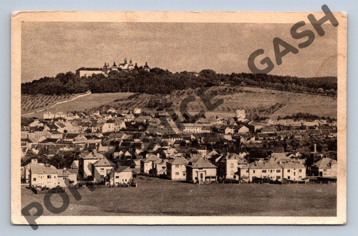 Nabízím originální starou pohlednici s motivem Svaté Hory u Příbrami. Pohlednice zachycuje malebný výhled na poutní areál Svatá Hora na kopci nad městem a přilehlou část města Příbram. Jedná se o černobílou fotografii, tisk Orbis, cca první polovina 20. století. Na zadní straně je uveden popis místa, vyznačen prostor pro adresu a známku, pohlednice nebyla použitá. Stav odpovídá stáří, místy mírné opotřebení rohů a nečistoty. Vhodné pro sběratele historických pohlednic a zájemce o památky a historii ČR.