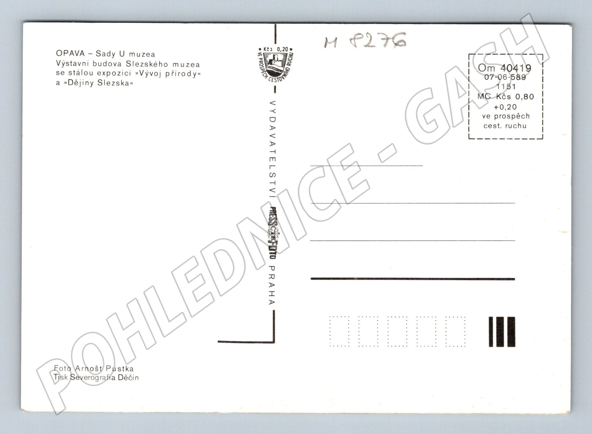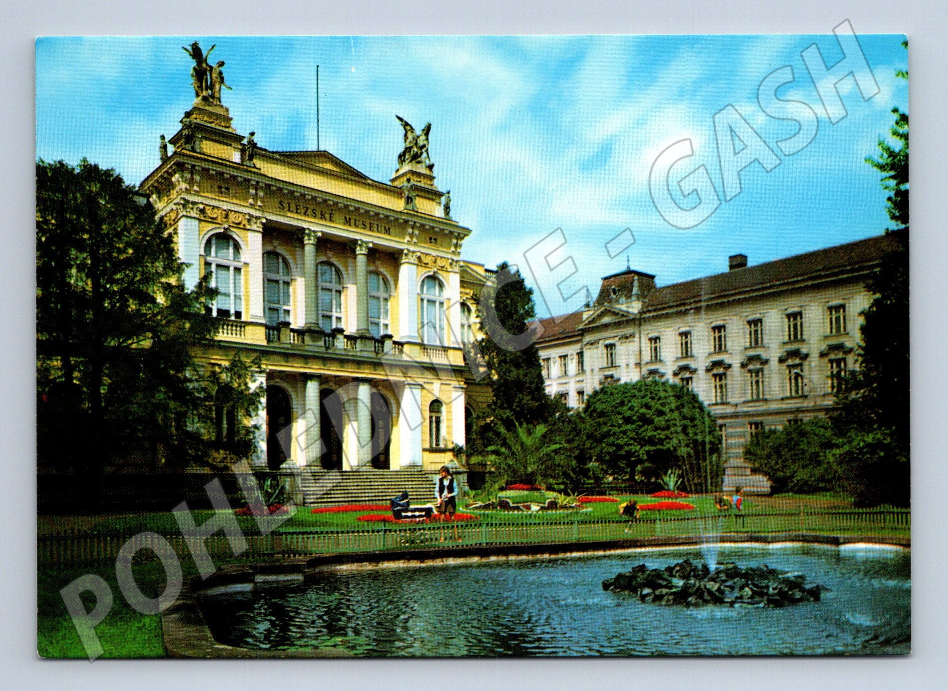 Pohlednice zachycuje výstavní budovu Slezského muzea v Opavě, která je známá svou architekturou a krásným okolím s fontánou a parčíkem. Na zadní straně je stručný popis: OPAVA – Sady U muzea, Výstavní budova Slezského muzea se stálou expozicí Vývoj přírody a Dějiny Slezska . Pohlednice je tištěna Severografií Děčín a autorem fotografie je Arnošt Pustka. Jedná se o sběratelský kousek vhodný pro milovníky historických pohlednic a regionálních pamětihodností. Výborný stav, bez psaného textu.