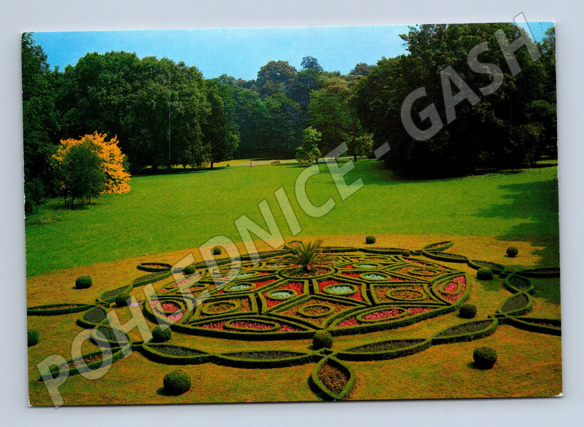 Originální pohlednice zachycující podzámeckou zahradu v Kroměříži s krásnou květinovou výzdobou pod zámkem. Pohlednice ukazuje centrální geometrický záhon obklopený zelení a parkovou úpravou, ideální pro sběratele historických a památkových pohlednic. Na zadní straně je podrobný popis v několika jazycích, vydavatelství vydáno v Praze, foto Petr Zora. Výborný stav, vhodné do sbírky či jako dárek milovníkům památek a zahradní architektury.