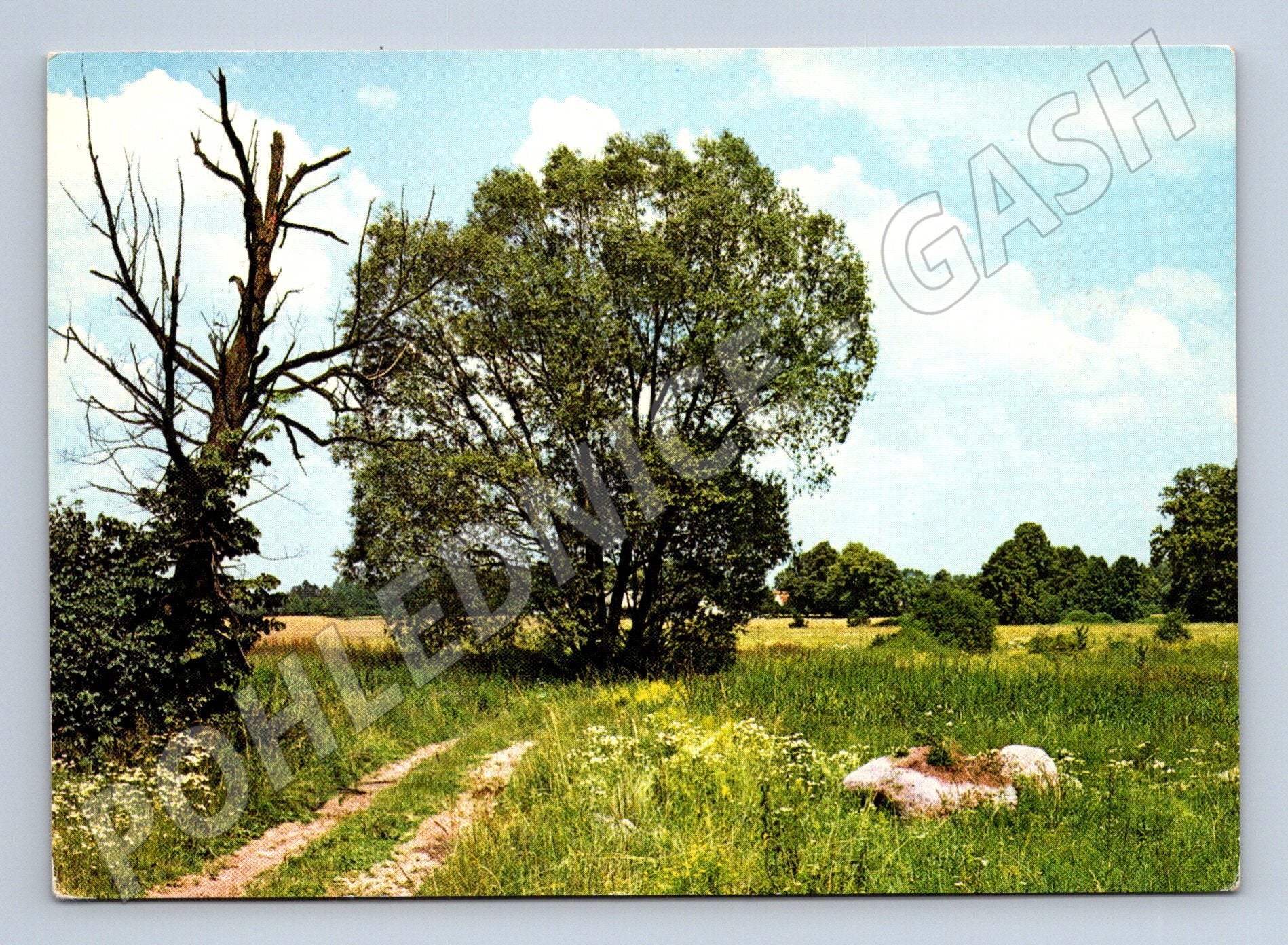 Barevná pohlednice zobrazující klidnou českou krajinu s loukou, polní cestou, suchým stromem a zelenými stromy v pozadí. Pohlednice je pravděpodobně z období po roce 1950 a byla vydána nakladatelstvím Orbis Praha. Na zadní straně je uveden autor fotografie F. Bučina a tisk Severografia Velký Šenov. Neprošlá poštou, zachovalý stav, vhodná do sbírky nebo pro milovníky přírodních motivů české krajiny.