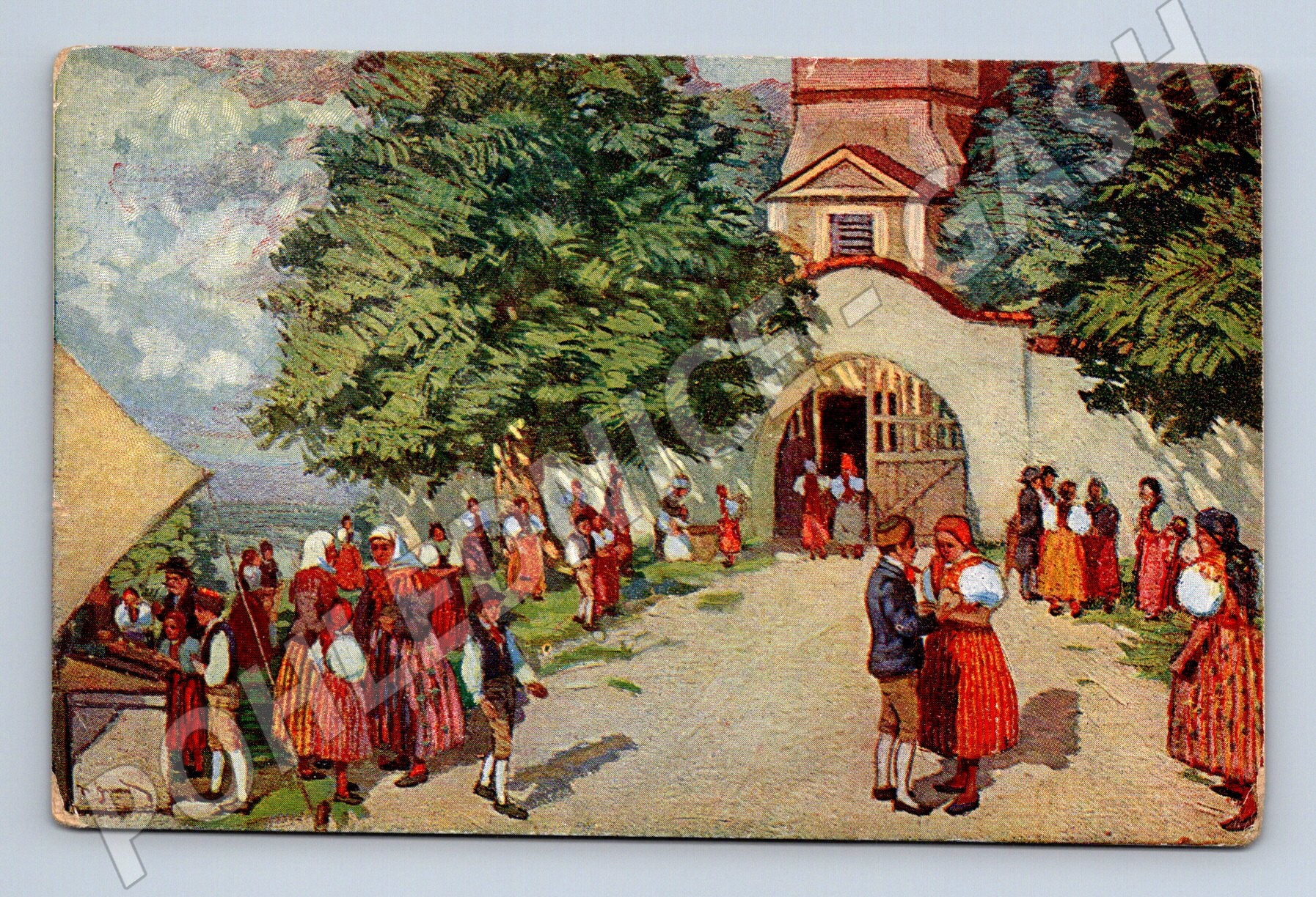 Starobylá pohlednice s názvem Pouť na Chodsku od malíře Josefa Strnada zachycuje tradiční českou lidovou slavnost v Chodsku. Na obrázku je vidět pestrý dav lidí v krojích, v popředí je trhovec a za nimi kostel nebo kaple a bohatá zelená příroda typická pro oblast Chodska. Pohlednice má malý formát a není popsána ani prošlá poštou. Zadní strana obsahuje pouze údaje o autorovi a místu. Velmi pěkný sběratelský kus s tématem českého venkova a tradic, vhodný pro milovníky etnografie a historických pohlednic.