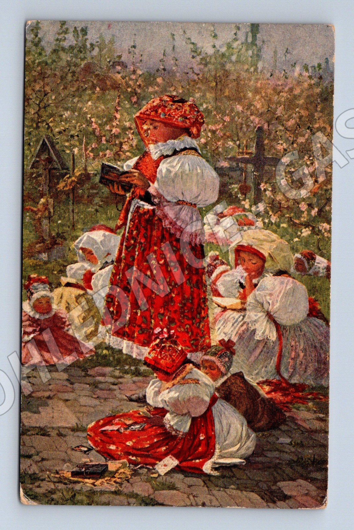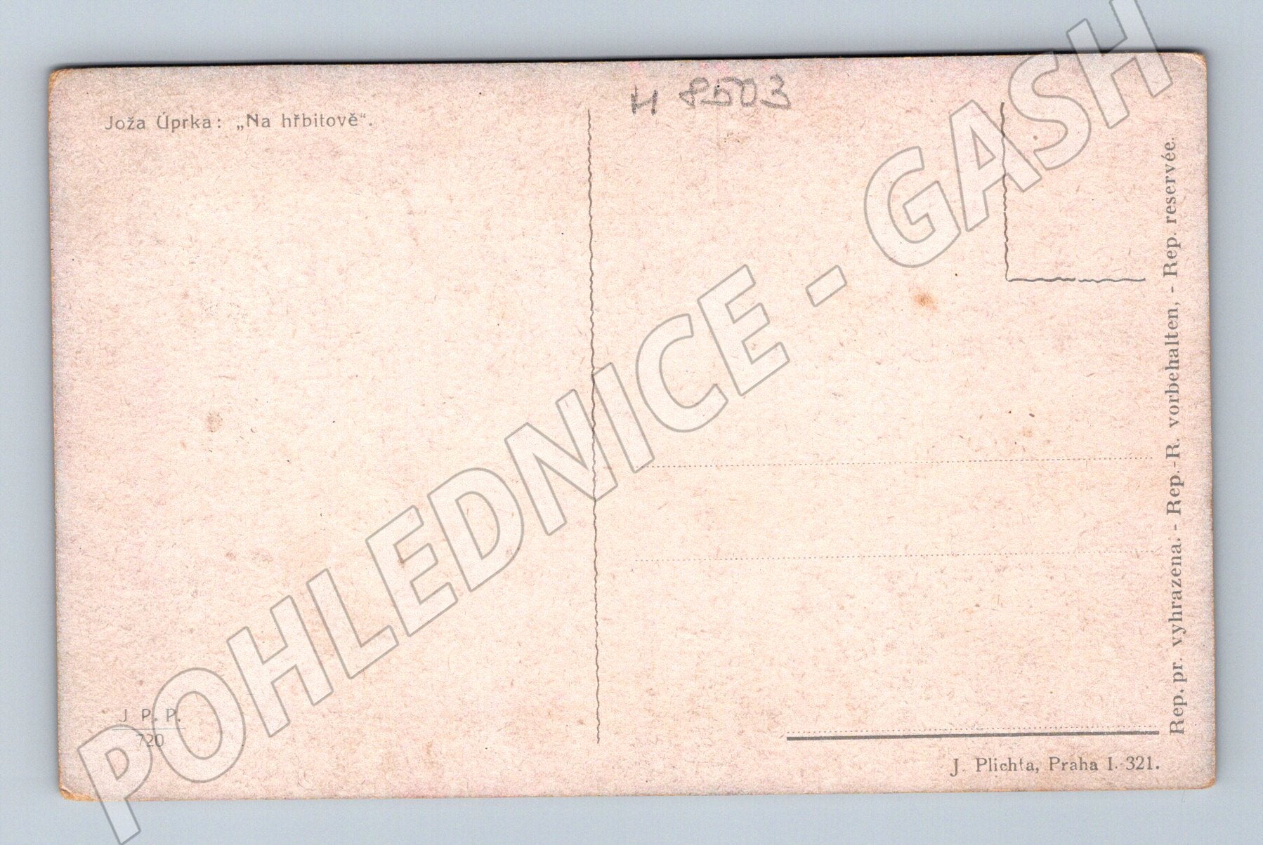 Originální sběratelská pohlednice s motivem obrazu známého malíře Joži Uprky – Na hřbitově“. Pohlednice zachycuje ženy v tradičních krojích na venkovském hřbitově, obklopené kvetoucími stromy. Autorem je významný představitel moravského malířství a etnografie, jehož díla jsou ceněna mezi sběrateli. Na zadní straně jsou popisky v češtině, pohlednice nevypnutá a ve velmi dobrém stavu, vydavatel J. Plichta, Praha. Ideální k rozšíření sbírky historických pohlednic s etnografickou tematikou či malovanými motivy lidových tradic.
