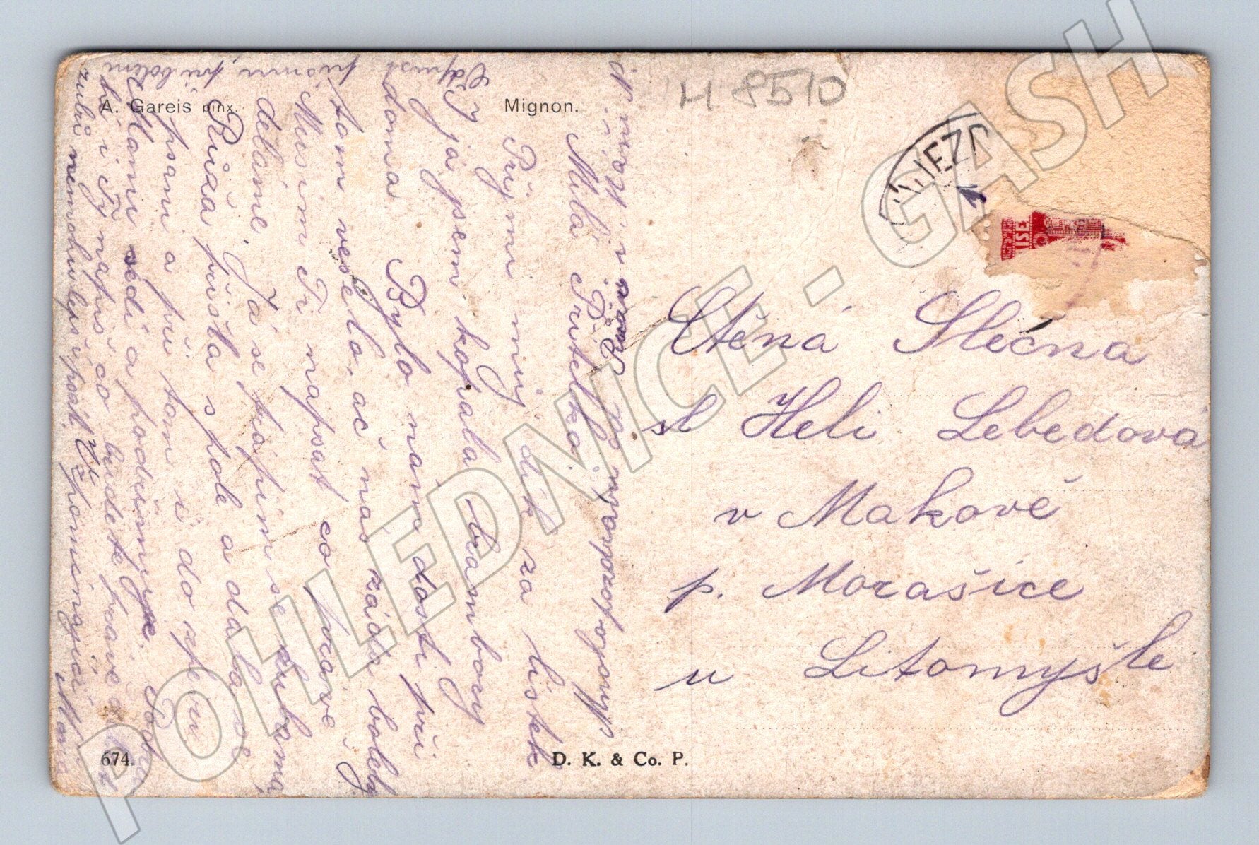 Stará pohlednice Mignon – malba A. Gareis, adresovaná, 1910s