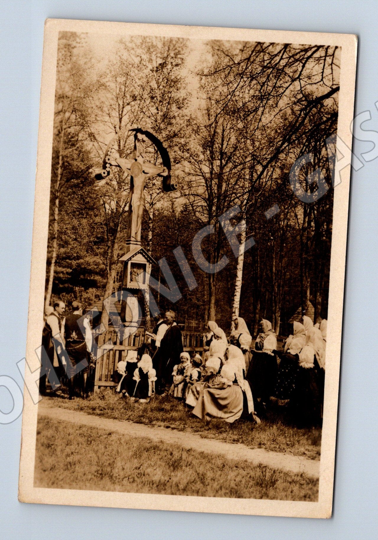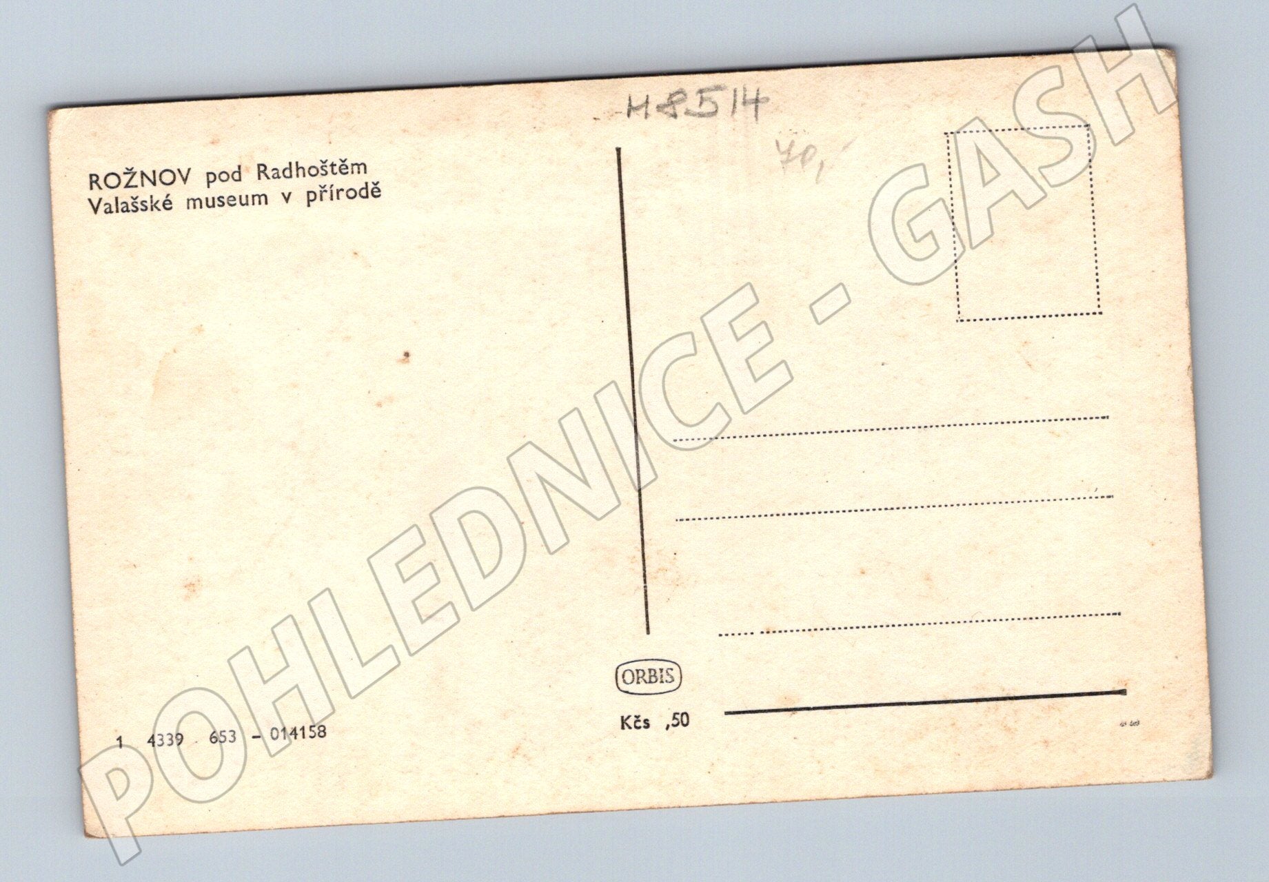Originální pohlednice s motivem tradičních valašských tanců ve Valašském muzeu v přírodě v Rožnově pod Radhoštěm. Pohlednice zobrazuje skupinu lidí v krojích při lidovém tanci u dřevěné sochy a stavby v přírodním prostředí. Na zadní straně je uveden popis místa i vydavatelské údaje. Jedná se o původní tisk s historickou hodnotou, ideální pro sběratele etnografických a regionálních pohlednic. Stav viz foto, drobné opotřebení odpovídající stáří.